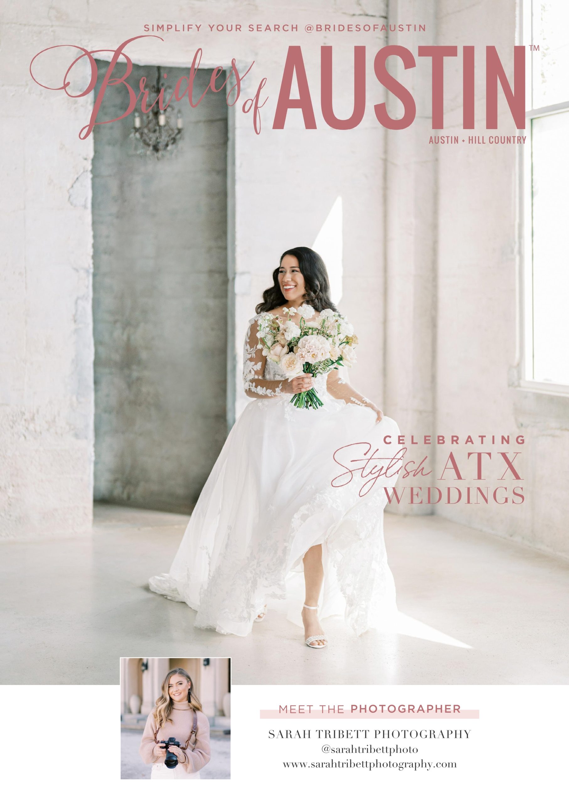 It’s a beautiful day for a MAG RELEASE! We’re thrilled to unveil the shiny new cover of our Brides of Austin Spring/Summer 2023 issue, captured by the oh-so-talented Sarah Tribett Photography! There were so many photos from Breanna Wilber Escobar’s modern and romantic affair to choose from, but this candid shot of the bride was so stunning, we just knew it had to be the one!