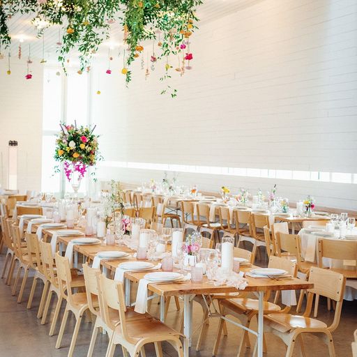 Michelle and Justin’s boldly colorful soiree at Prospect House was what dreams are made of. Wild floral of greens, pinks and oranges were the perfect complement to the natural light and architecture of the venue.