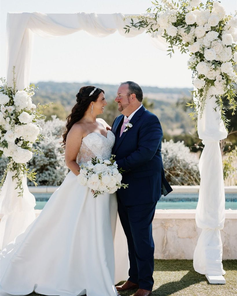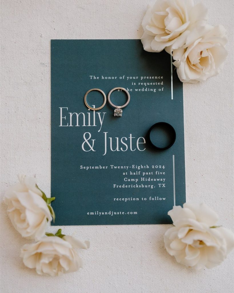 Emily + Juste’s special day at Camp Hideaway Retreat was nothing short of magical. With the dreamiest touches of white and blue, their outdoor ceremony featured stunning Hill Country views, perfectly complementing this breathtaking couple. ??