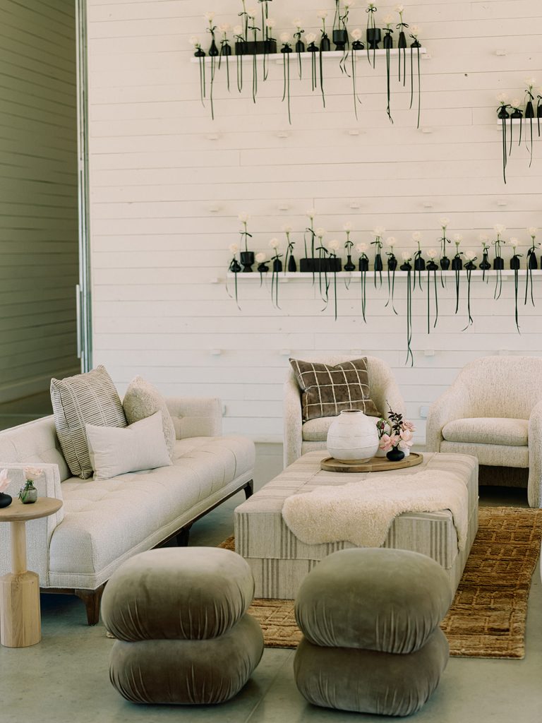 This styled shoot beautifully blends modern minimalism with timeless romance. From the chic, neutral-toned lounge setting to the bride’s flowing gown and soft floral details, every element evokes effortless elegance. The natural light and serene outdoor backdrop create a dreamy atmosphere, perfect for capturing the essence of refined love.