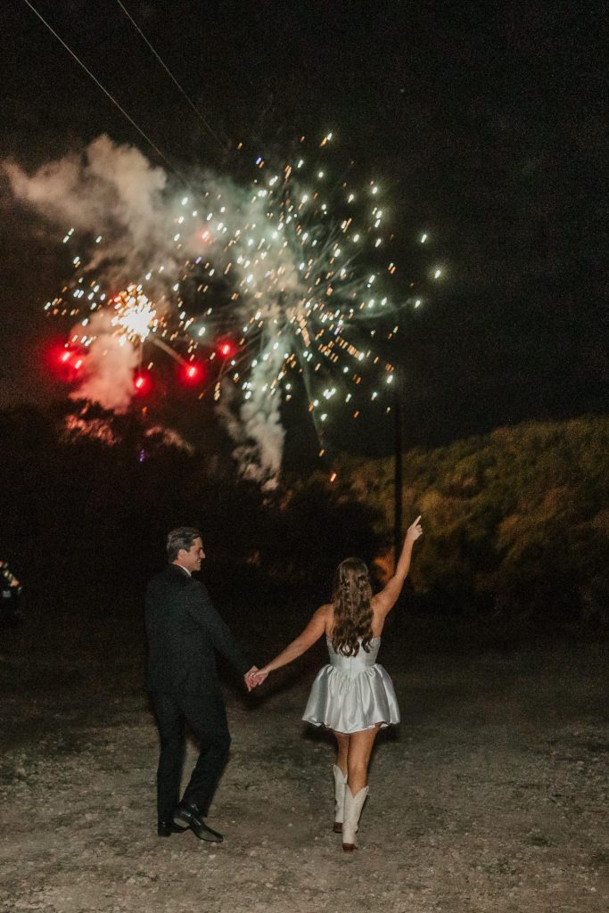 There’s something truly magical about an outdoor wedding, and Bailey and Cole’s celebration was no exception! Nestled amidst nature’s beauty, they exchanged vows in a perfectly rustic setting, with delicate blush accents adding a soft, romantic touch throughout. As the night unfolded, a breathtaking fireworks display lit up the sky, providing an unforgettable finale to a truly enchanting day.