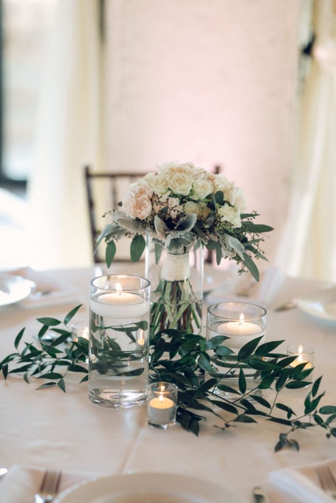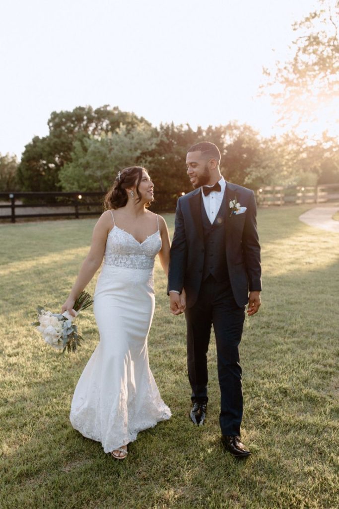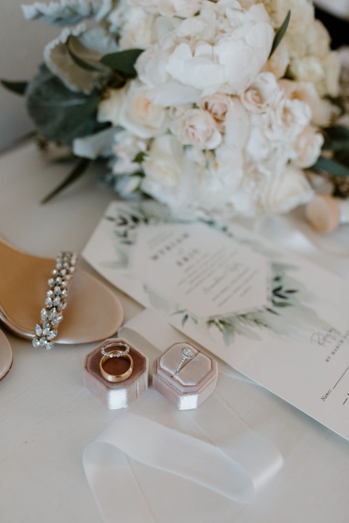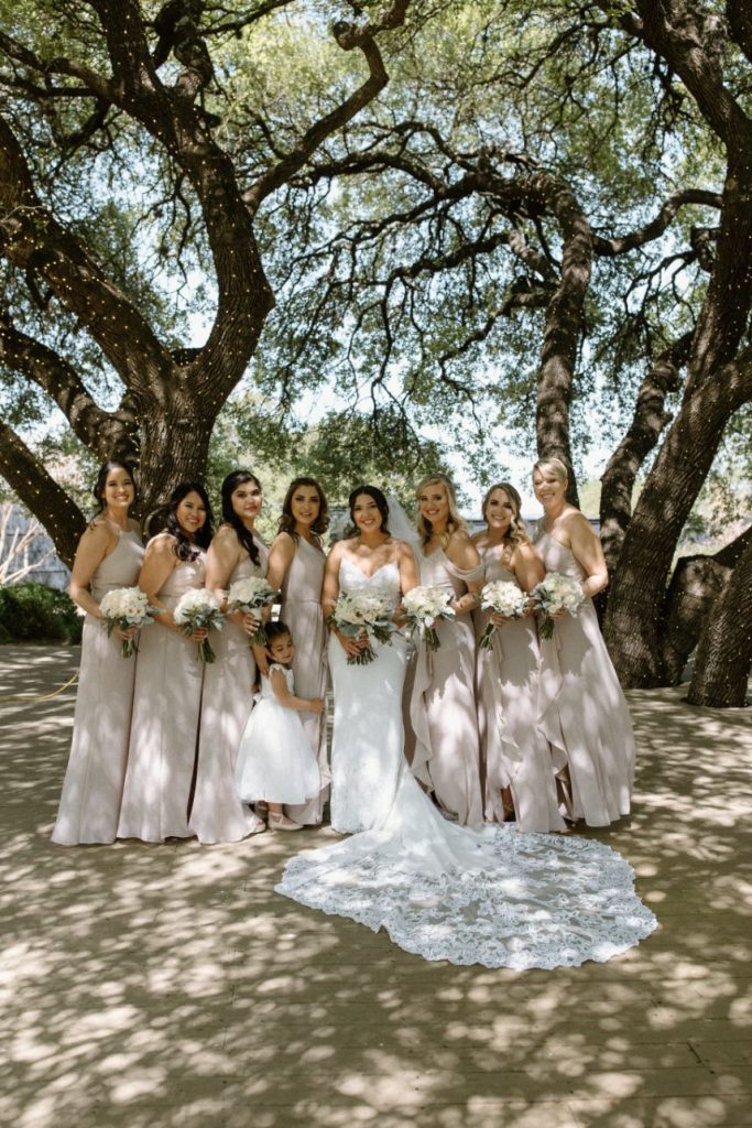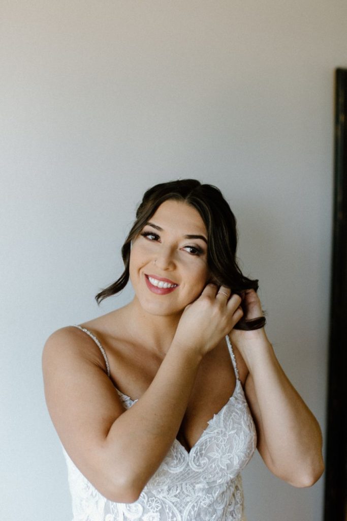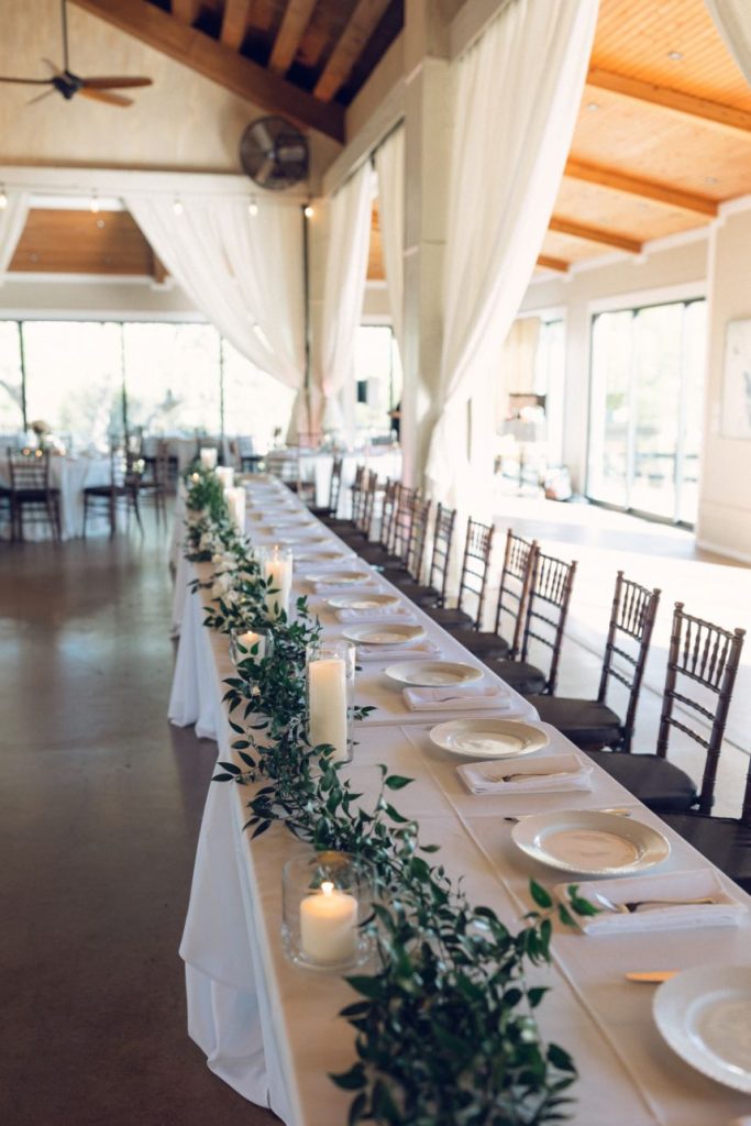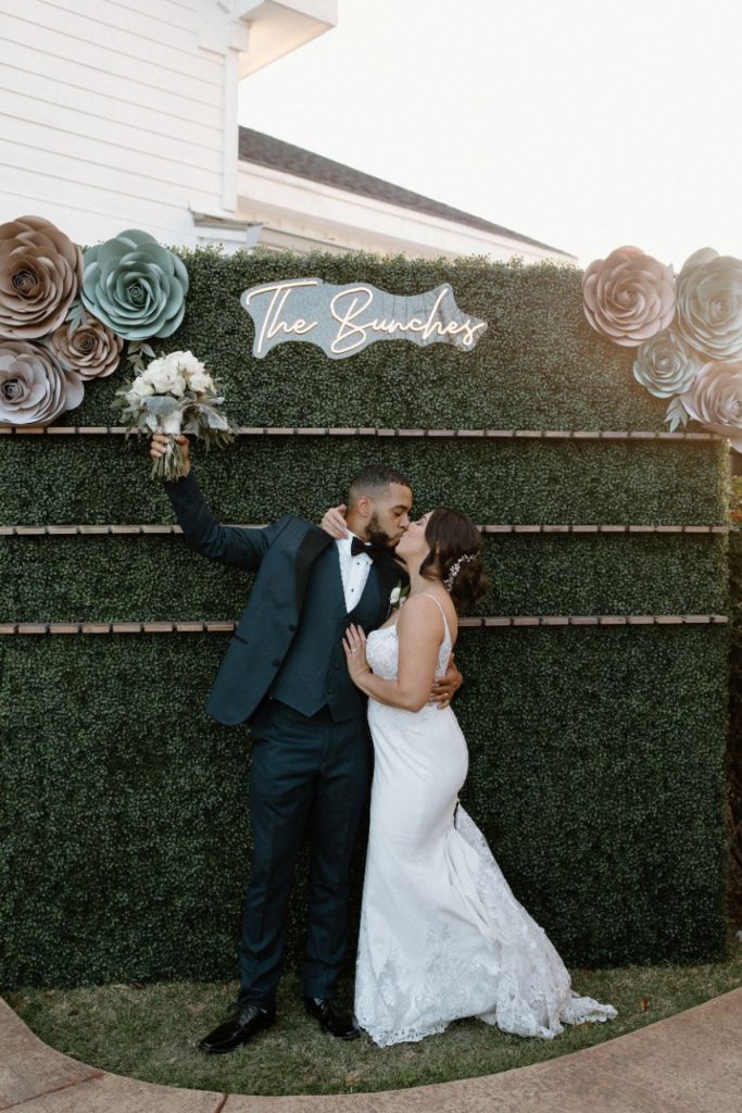 This couple’s simple outdoor wedding with subtleties of greenery was effortless in all the right ways. Lovely ivory florals with accents of green foliage was the perfect accent. The airy details of the venue added to the simple, modern style DJ wanted for their big day. Floor to ceiling windows, an open dance floor and a beautiful outdoor ceremony space made this wedding entrancing. DJ kept it simple with her bridal gown with gentle touches of lace around the bodice and a captivating train. The couple honored some of their Hispanic heritage by having a Mariachi band perform during their cocktail hour and made sure to pay plenty of Mexican and old school R&B tunes. Aurelia Baca Photography captured the memories of DJ and Eric’s big day that they will cherish for the rest of their lives. Cheers to the new Mr. and Mrs. Bunch!