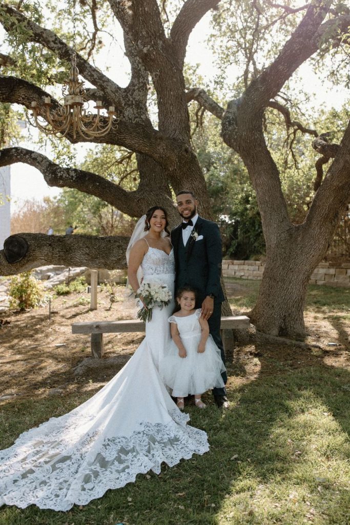 The story of how this simple outdoor wedding came to be is seriously so sweet! DJ and Eric first met at work and didn’t really talk much. After going to social events and starting to hang out more, their friendship blossomed into a sweet relationship. The proposal took DJ completely by surprise, and Eric even included Leilani, DJ’s daughter. They had planned a date night, and from the start, DJ noticed Eric acting a little strange. Next thing you know, they are standing by a river and Eric is on one knee while Leilani is holding the ring – doesn’t that just make you tear up! Of course, she said yes and “ugly cried like Kim K” according to the bride.