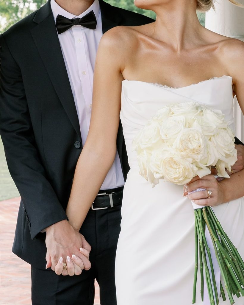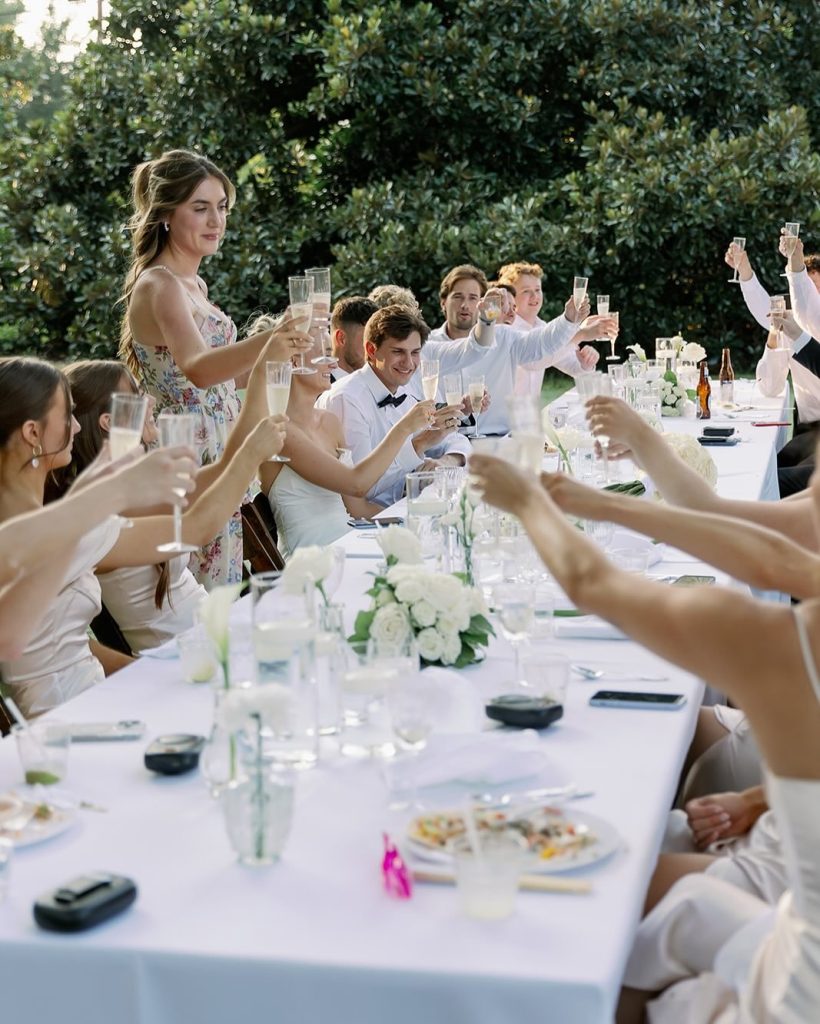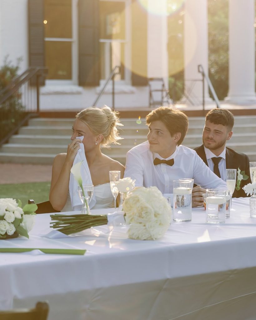 Cassidy looked like a vision on her wedding day. Her romantic updo, paired with delicate long-stemmed florals, and the enchanting outdoor reception, created a scene straight out of a movie. ??‍♀️??