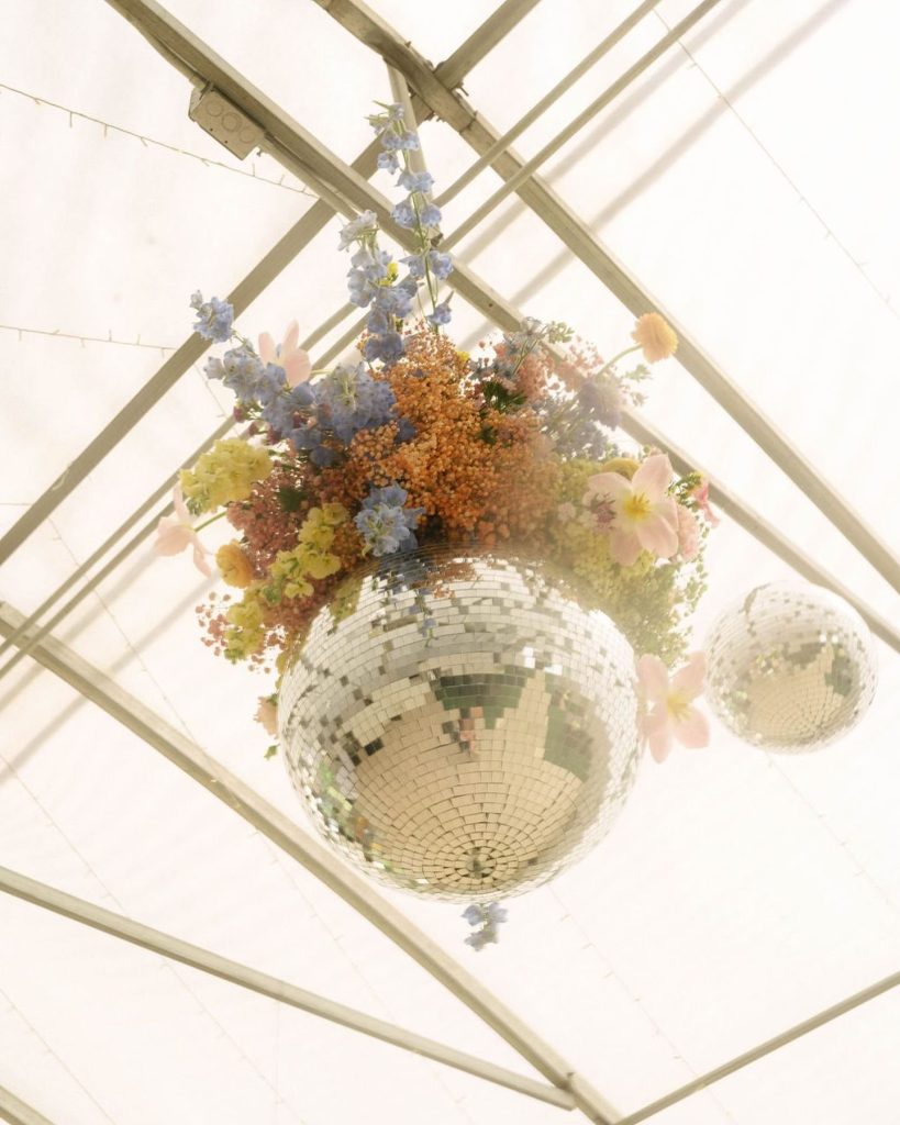 Grace is the sunshine on a cloudy day! Her pale yellow color scheme paired with disco balls from Disco Flair Rentals gave all the happy vibes. ??