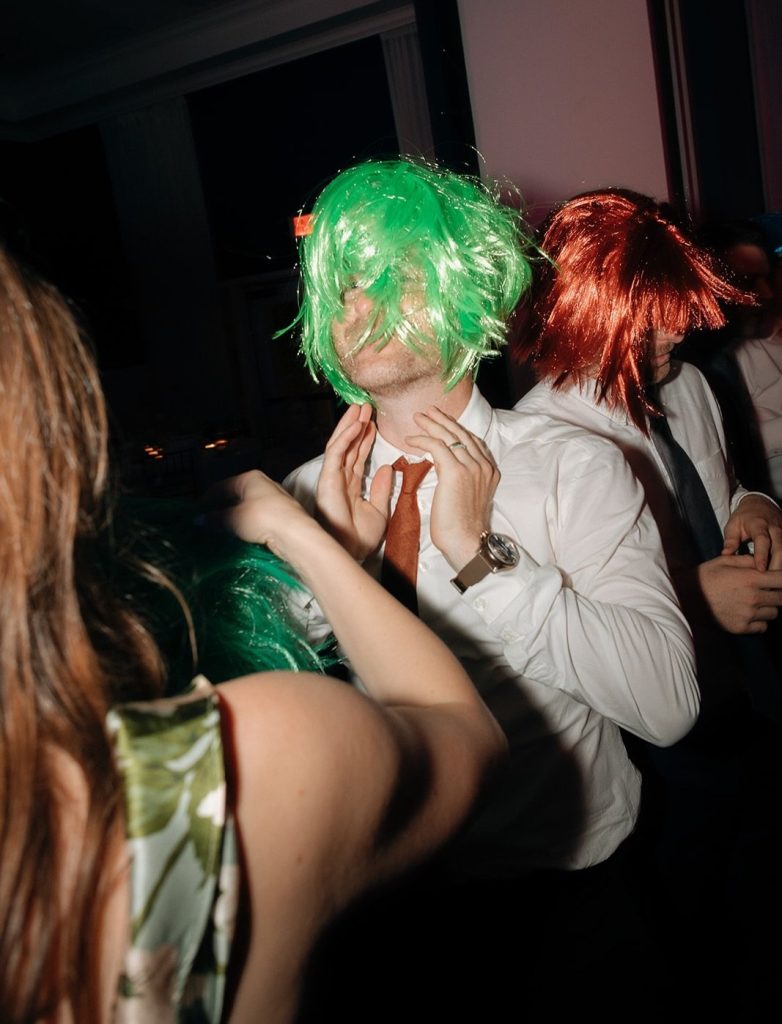 Hotel Ella was the dreamiest setting for the Schramm’s vintage-inspired celebration. From the darling banner draped across the balcony to the outdoor ceremony and cocktail hour, every moment felt timeless — and the reception? Let’s just say the wigs on the dance floor were an unforgettable touch. 👛