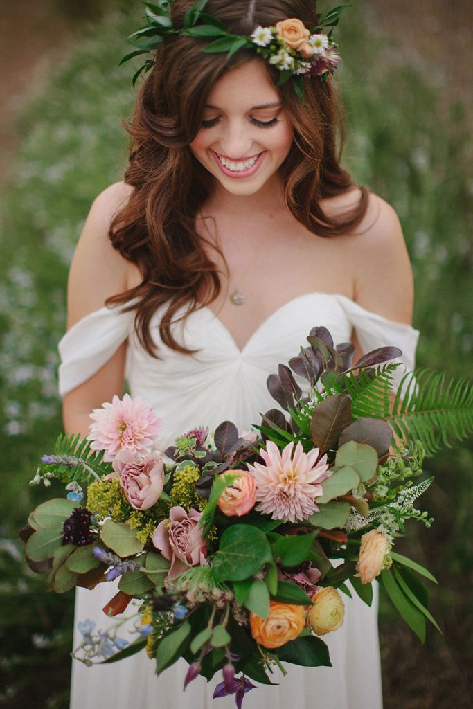 Surrounding the altar was a variety of what appeared to be wild flowers and grasses, enclosing where the bride and groom would exchange vows. The floral clusters appeared to have sprouted there naturally—simply stunning, awaiting Kelsey and Talon.