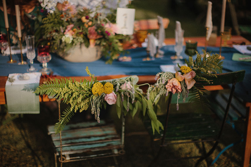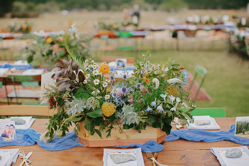 The tables abounded in life and color—stunning yellows and purples and muted pinks burst from the floral arrangements, mixed with sprigs of various greenery, creating a feel of wild yet beautiful life before one’s eyes.