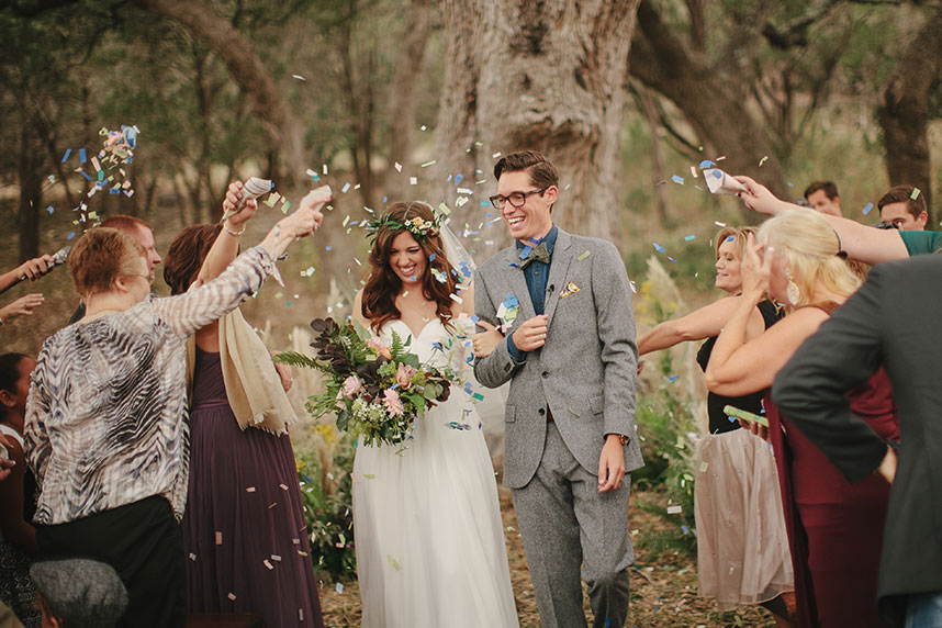 As her grandpa officiated the ceremony, time seemed to stand still. The vows were exchanged, the “I do’s” said, and the engaged became newly weds as they exited the aisle, showered with hand-cut confetti thrown by their family and friends.