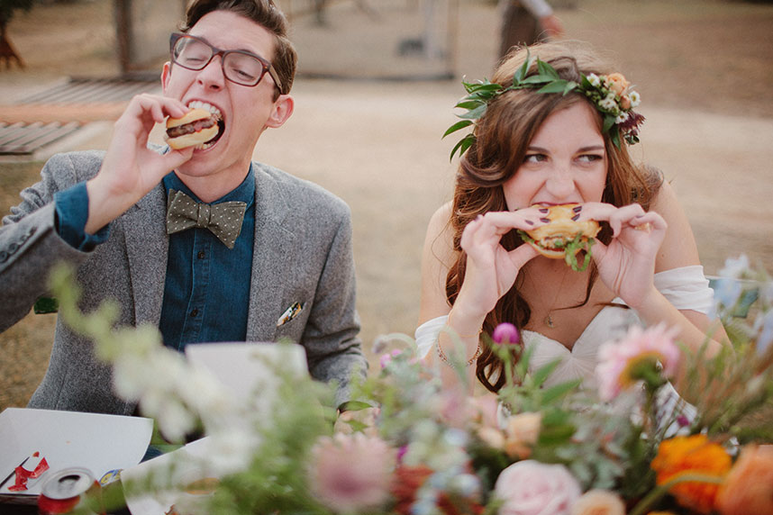 Burgers and fries from a local food truck provided guests with a variety of sliders and sides like fried macaroni-and-cheese balls and tasty, hand-cut fries. Mini pies and delicious wedding cake awaited guests, adding the finishing touch to the local, Austin cuisine.