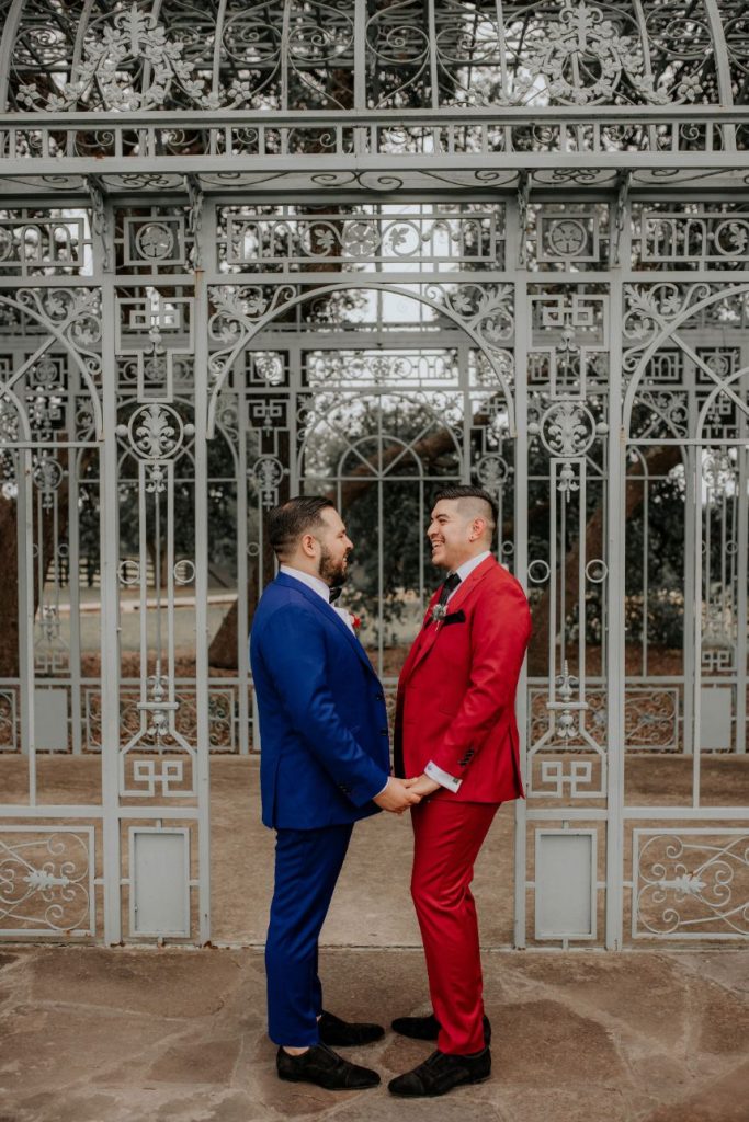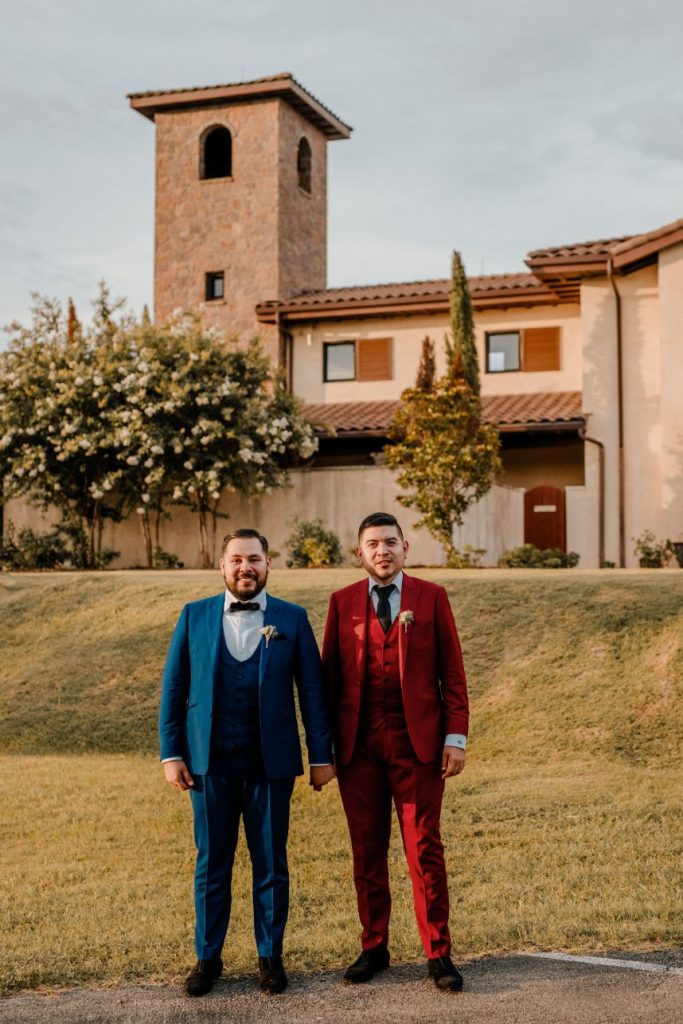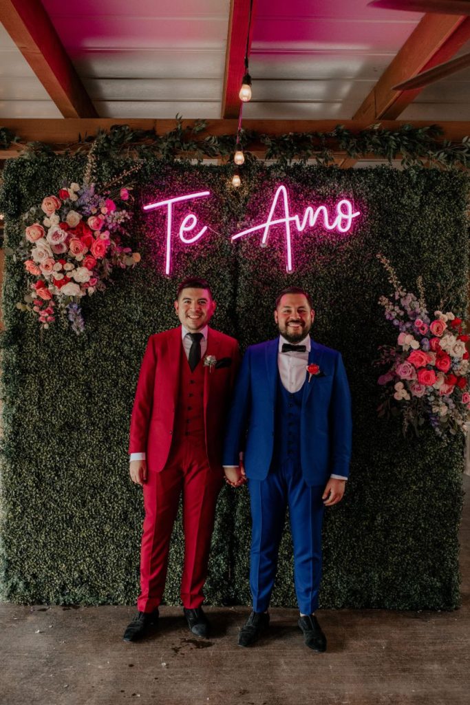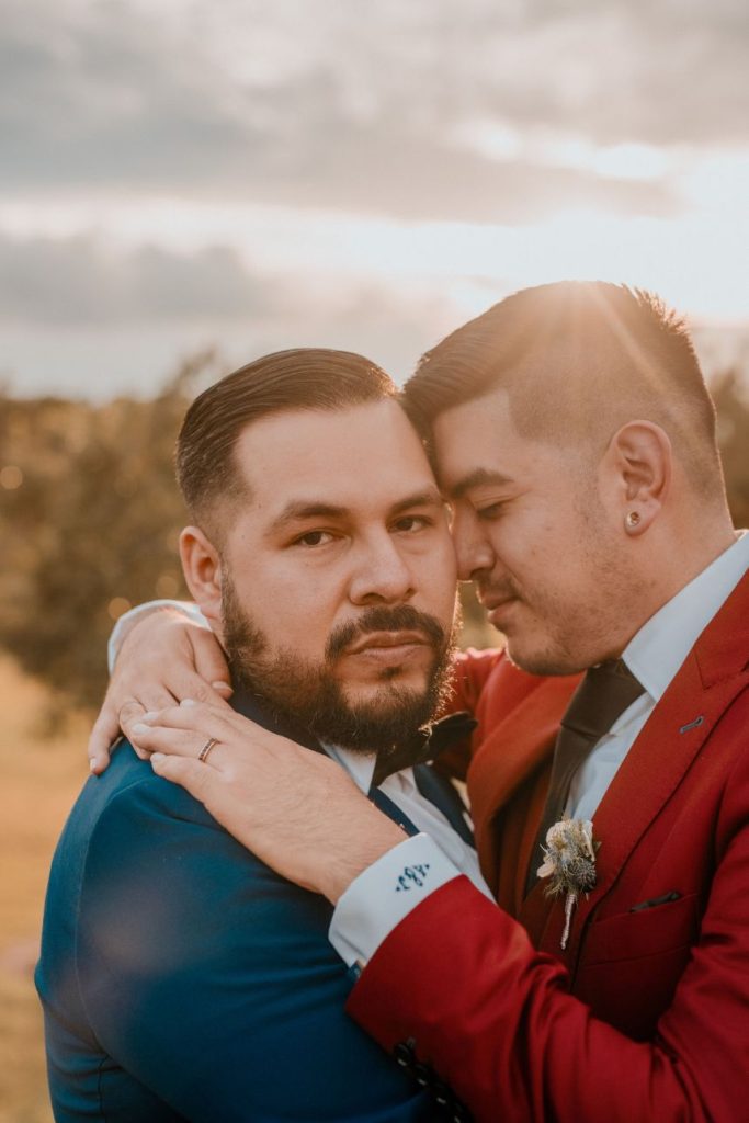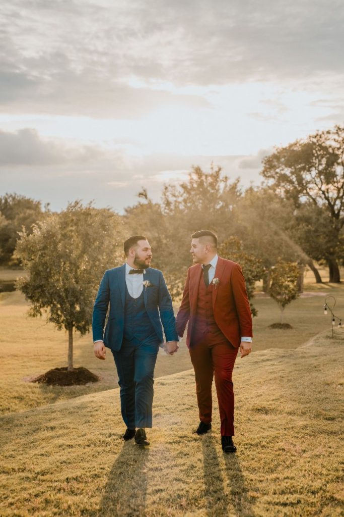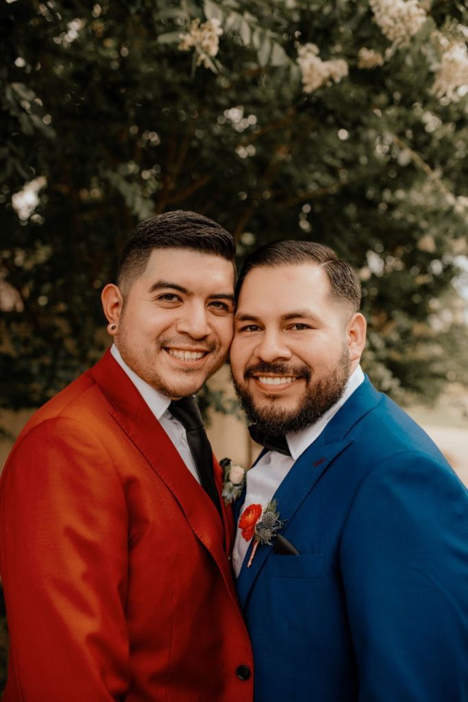 The warm tones in Alfonzo and Johnny’s wedding with the added bright pops of red and blue defiantly bring the wow factor! The couple met their freshman year of college and knew they had a special connection the moment they met. Johnny popped the question in the exact spot where the two first said, “I love you.” After the sentimental engagement, the couple began planning their dream wedding with An Event To Remember at Ma Maison. Alfonzo and Johnny started their day getting ready together with friends. The couple felt the importance of going through the entire day as one. And we love that they did! After the bridal party was all glammed up, the couple made their way to the venue. Alfonzo and Johnny both slipped into their dazzling suits, Alfonzo in a dreamy red and Johnny in luxe blue. Finally, it was time to say I do!