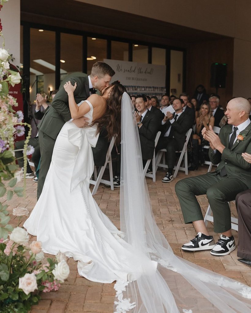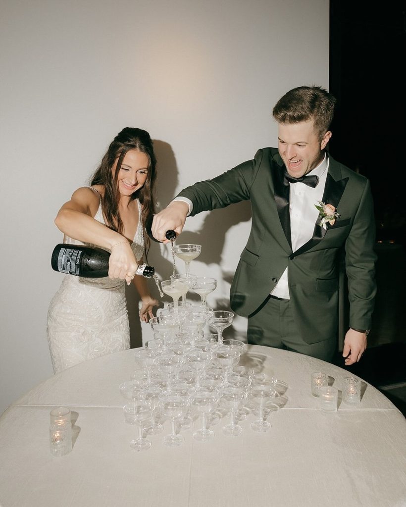 Not even rain could stop Allison and Cruz’s winter wedding at The Grand Lady! From the groomsmen rocking green suits and sneakers, to Allison’s stunning dress changes, every detail reflected their fun-loving style and modern romance.⁠ ☔️?