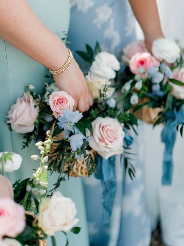 Amanda + Kevin’s garden party-inspired wedding at the stunning Swallows Eve was straight out of a dream! One of our favorite details? The charming floral bag baskets carried by the bridesmaids instead of traditional bouquets — a whimsical and creative touch we’re still swooning over! ?