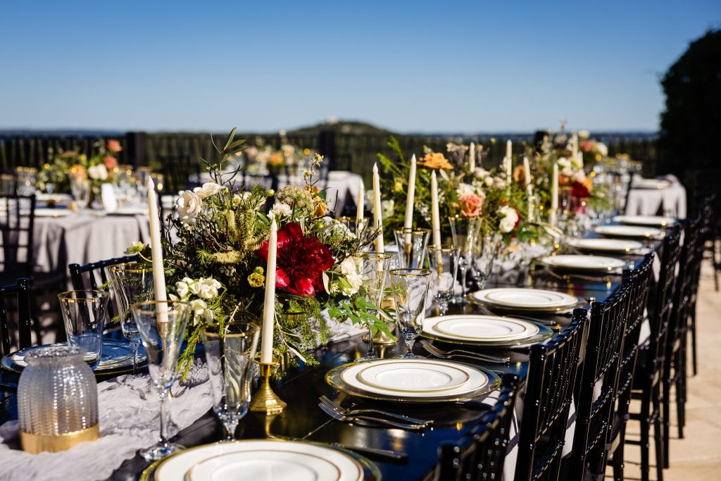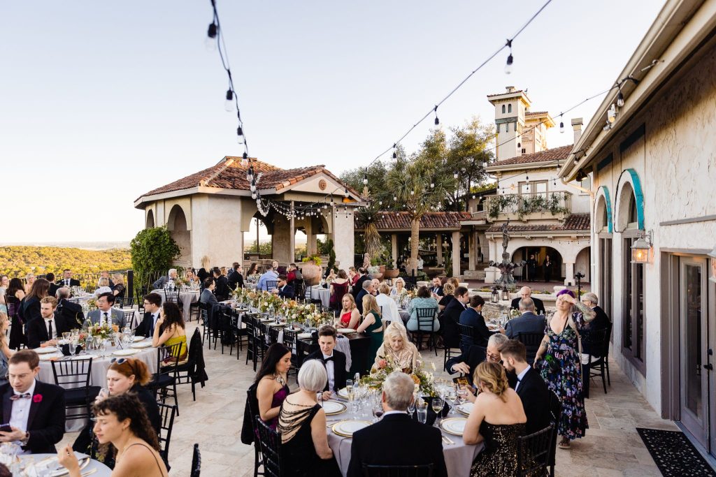 Alex and Josh tied the knot at the breathtaking venue, Villa Antonia! The guests filled the tables on the spacious patio that was adorned with florals of Dusty rose, whites and reds for a vintage Italian dinner style!