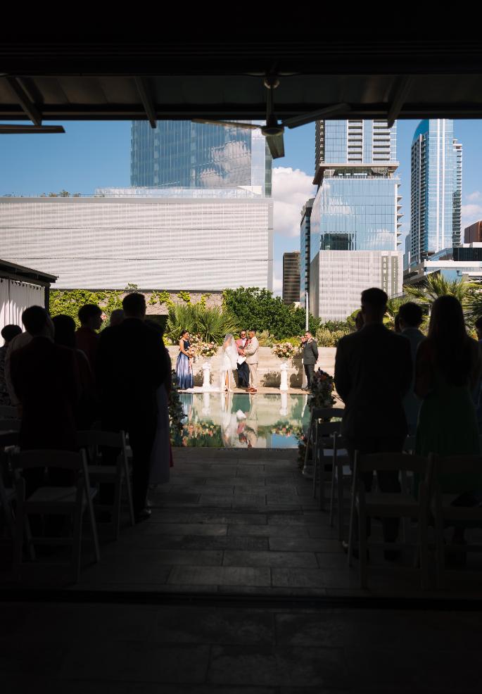 Andrea & Matthew celebrated their wedding day at the @canopyaustindowntown! They had a poolside ceremony, followed by an intimate candle lit reception, and even had time to sneak away for an iconic hotel room photoshoot. 🕯️