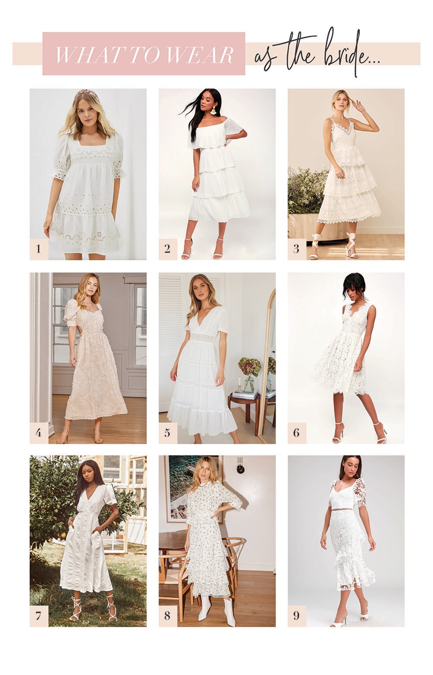 1. Audrina Eyelet Mini Dress | 2. Gala Ready Ruffle Midi Dress | 3. All Is Love White Midi Dress | 4. Unending Love Cream Midi Dress | 5. Folklore Midi Dress | 6. Love Swept Midi Skater Dress | 7. Wonderful Whims Midi Dress | 8. Bouquet for You Midi Dress | 9. Briarwood Midi Dress