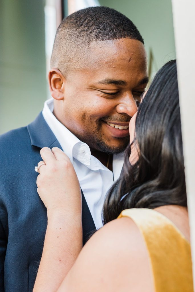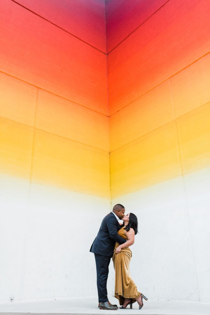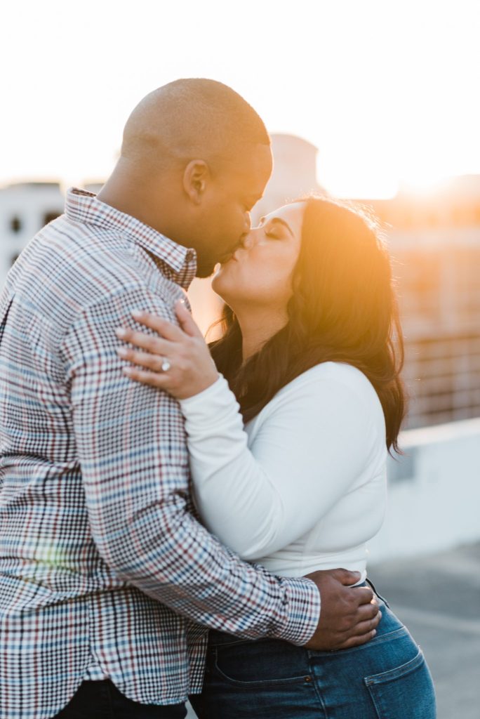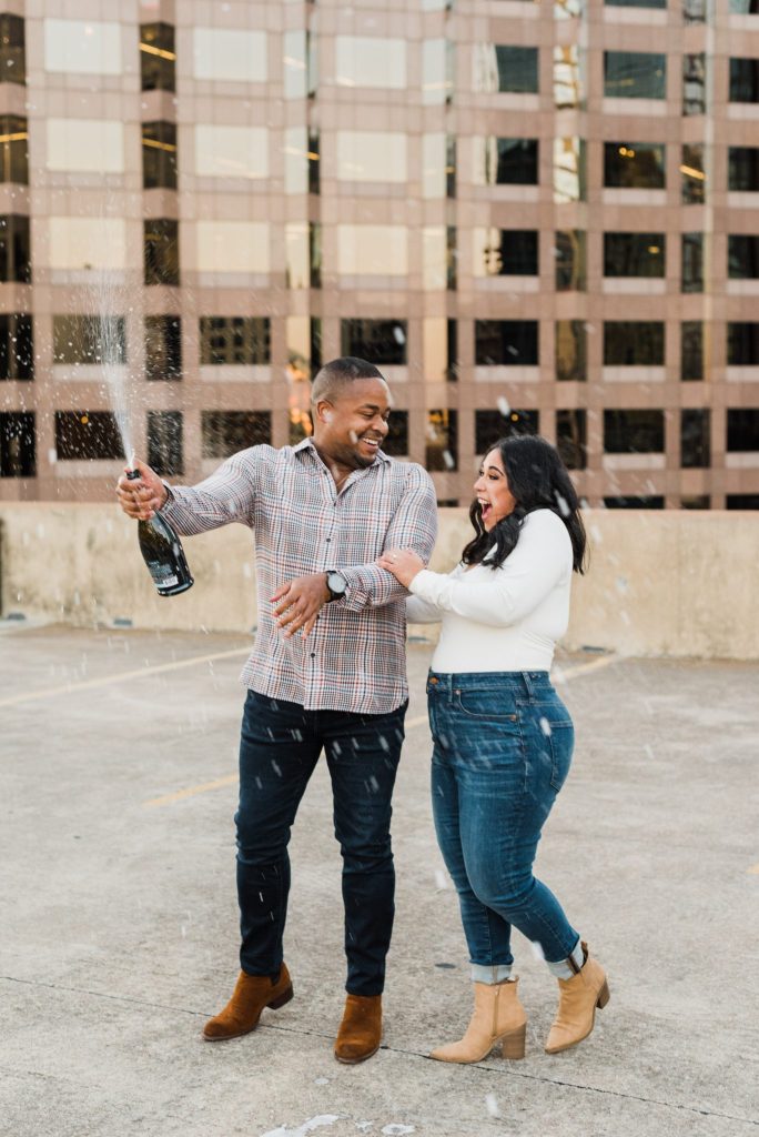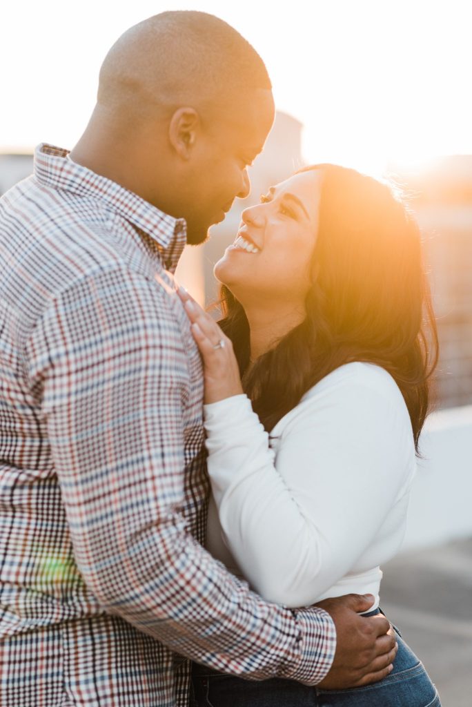 The couple shared they met on Bumble, and after their first date at Whistlers, they knew it was something special! Devin proposed in Breckenridge, Colorado, while on a trip with close family and friends. Ashley knew something was up due to Devin acting suspicious all day. Finally, the couple and their families gathered for family photos at the end of the day. Ashley and Devin were about to take their picture when Devin warned Ashley she had something in her teeth. Knowing Devin was about to get down on one knee, Ashley ran downstairs to fix herself and ran back up. While still trying to catch her breath when she arrived back upstairs, Devin proposed with a dreamy engagement ring! The two are set to wed in April with a White Desert Disco theme wedding. We can’t wait to see what more adorable images Carhart Photography captures of these two this Spring! Until then, we’ll be continuously scrolling through their downtown engagement shoot.