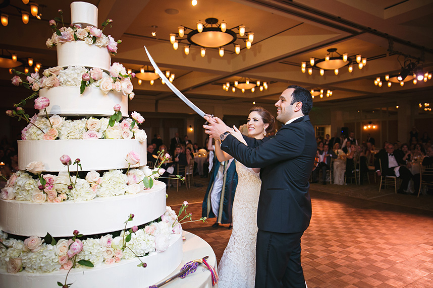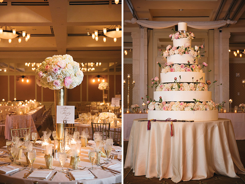 Nour and Abdoul were wed in an elegant Austin ballroom wedding at the Omni Barton Creek Resort planned by Whitt. The bride was escorted down the aisle in a stunning lace Ines di Santo gown featuring a sweetheart neckline and trumpet skirt and carried a classic bouquet of dusty pink and cream roses. Following the ceremony, the party continued with a glamorous ballroom reception. Here the newlyweds and guests enjoyed a stunning candlelit reception hall complete with an unforgettable 6-layer cake covered in long stem roses. After an eventful evening of merriment and dancing, all captured by the talented Julie Wilhite Photography, the night came to a close with a stunning fireworks display. Cheers to the happy new couple!