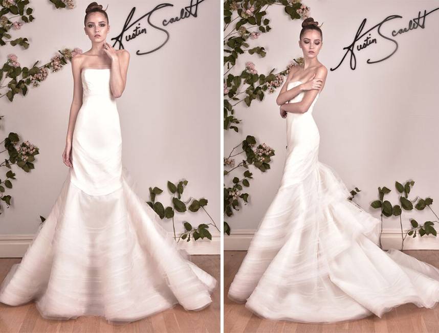 My goodness, Mr. Scarlett! You’ve done it again! When we saw the new Austin Scarlett Fall 2016 collection at New York Bridal Fashion Week a few weeks ago, we knew brides would fall in love with these oh-so-feminine gowns! From the use of tulle to the dramatic necklines, these gowns are the perfect combination of elegance and edge; you simply can’t go wrong with a designer wedding gown from Austin Scarlett! To shop Austin Scarlett locally, make an appointment with Julian Gold Bridal by calling (512) 473-2493! Cheers!