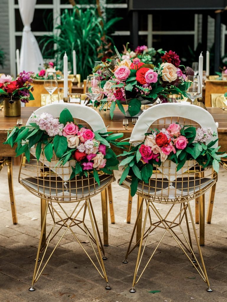 We’re loving all these gorgeous, floral-adorned chairs gracing weddings this year! We’ve seen many fresh new styles and designs adorned with beautiful blooms, greenery, signage, cheesecloth and more. Take a peek below at some of our faves.