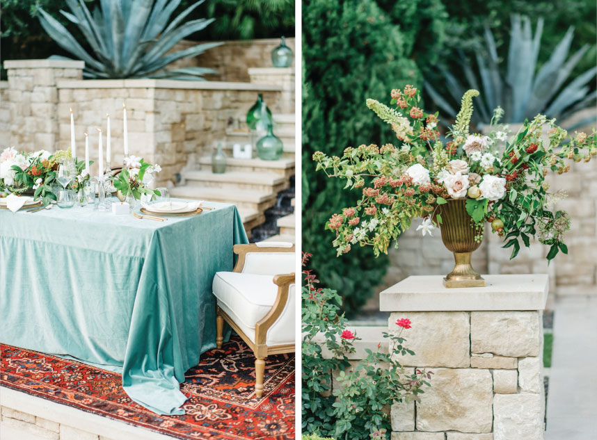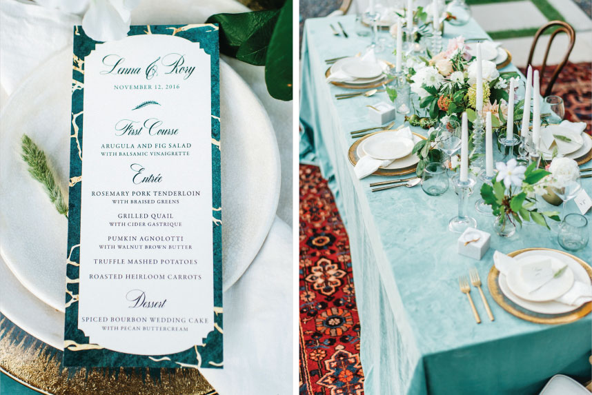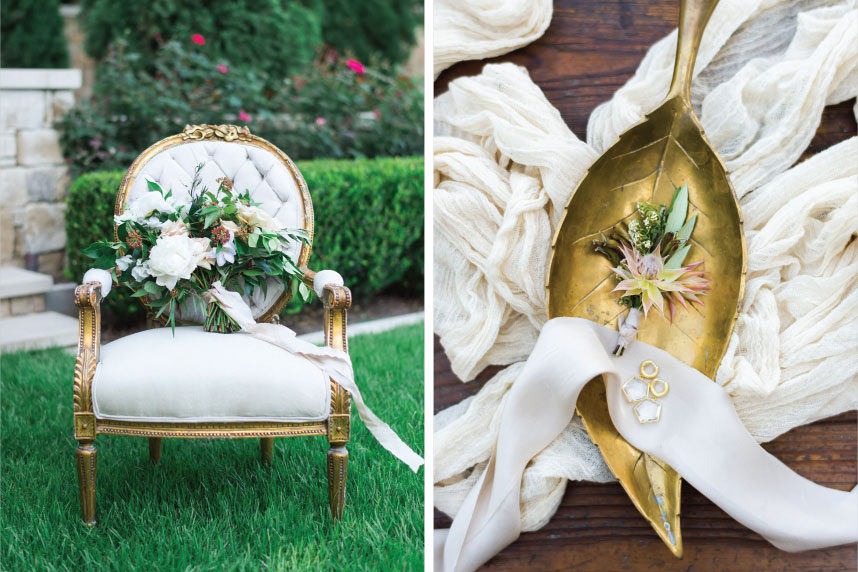 By blending earthy tones and elegant accents, the team of Gypsy Floral and Events created this dreamy and organic tabletop design. We can’t get enough of all the beauty captured by the oh-so-talented Sarah Goss Photography. Gypsy Floral and Events also incorporated soft and airy florals that are perfect for the bride who loves natural elegance. We seriously love all the little details! From the romantic printed invites and menus by Paper Place to the charming cake accents by Green Lily Bakery! Loot Vintage Rentals delightful gold accented chairs and Fiona sofa couldn’t be more perfect. We’re also crushing over their vintage trays, glass vases, and ceramic dishware. These place settings are also surrounded with pretty stemware, gold chargers and flatware from Marquee Event Group. These accessories finished off the tablescape by creating an old world atmosphere with moody hues and velvet textures. Adding to this look was a charming couple, the bride looked ravishing in her gown from Blush Bridal Lounge and jewelry from The Menagerie. Flair Style Lounge added to her timeless look by enhancing her hair and makeup. She was glowing! Sit back and relax with this delightful behind the scenes footage from Honey Gem Creative. Cheers to a talented team of vendors!