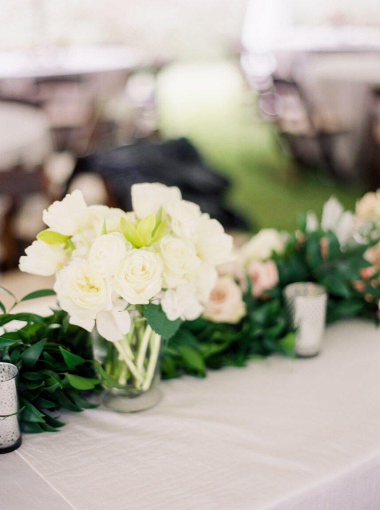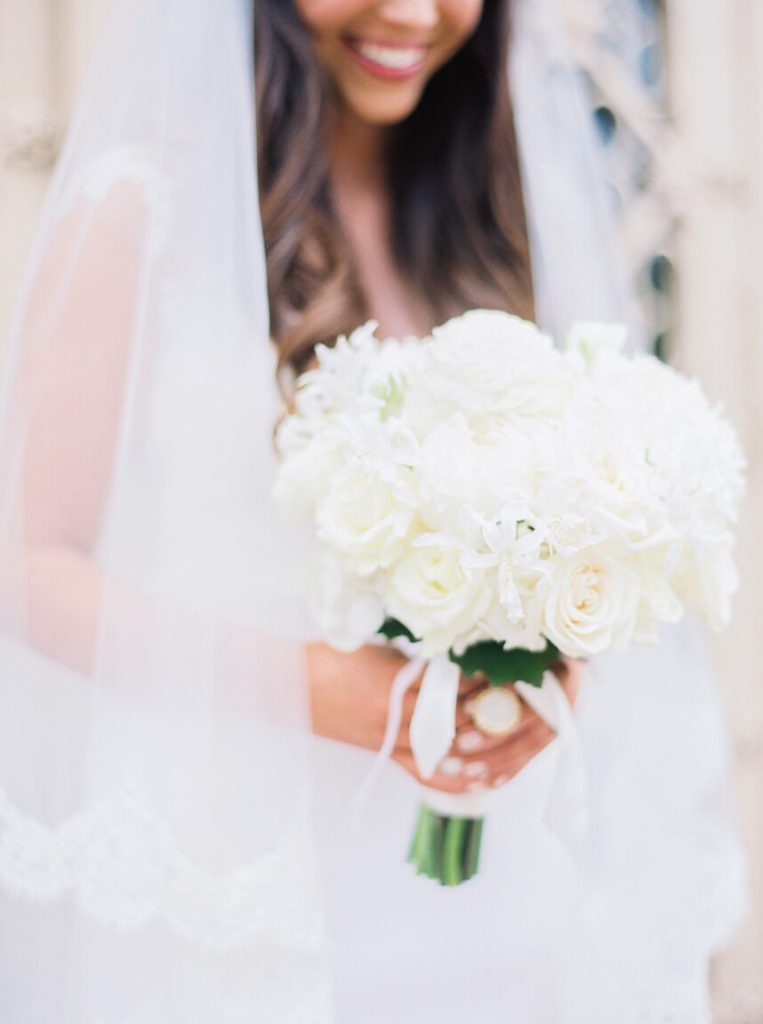 BEAUTIFUL BLOOMS: Kylie envisioned an all-white bouquet to represent purity and to complement the classic feel of the ceremony, and Lee Warth Floral Design did not disappoint! Kylie carried a gorgeous mix of all-white flowers including peonies, hydrangeas, ranunculus, Nerine lilies and garden roses.
