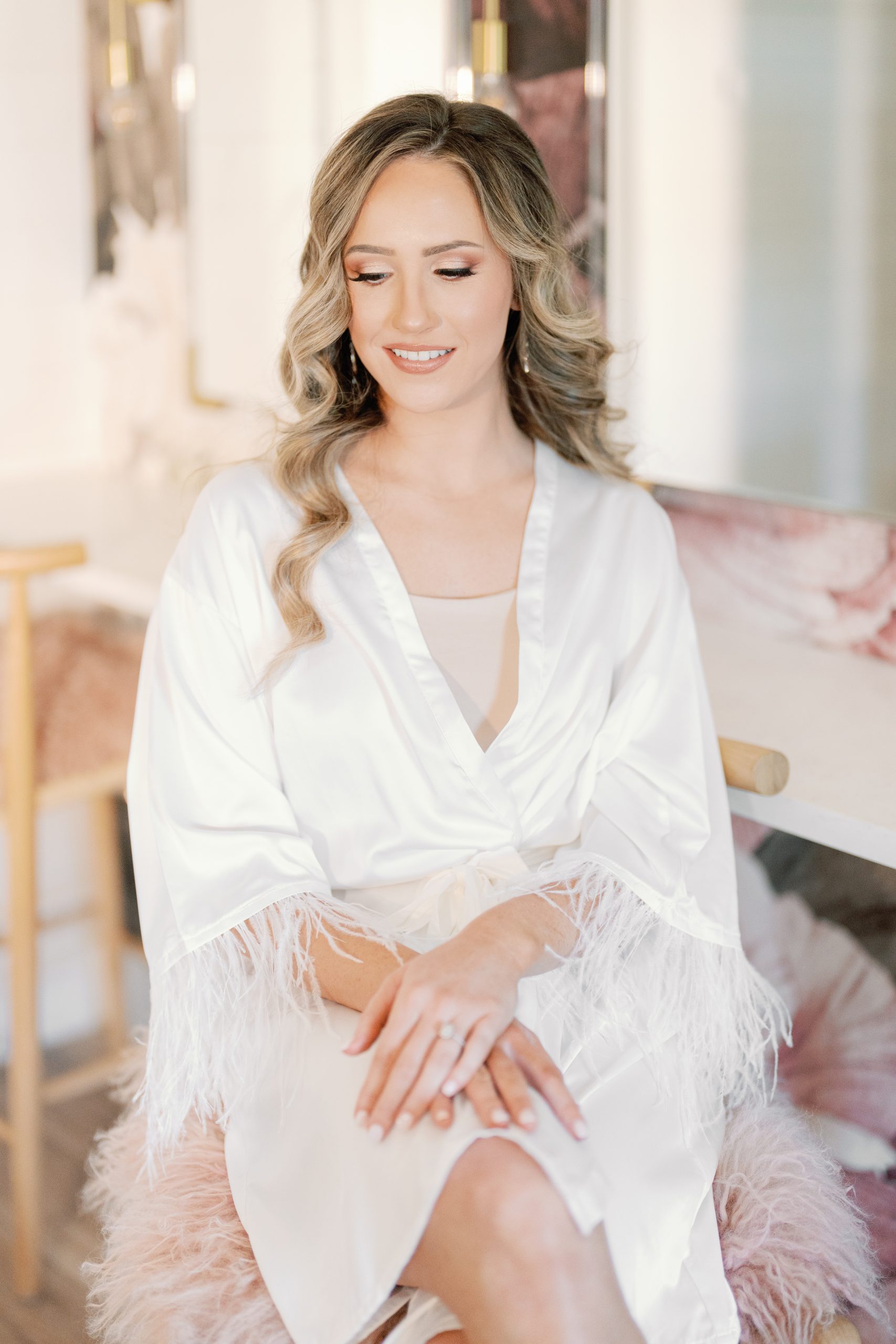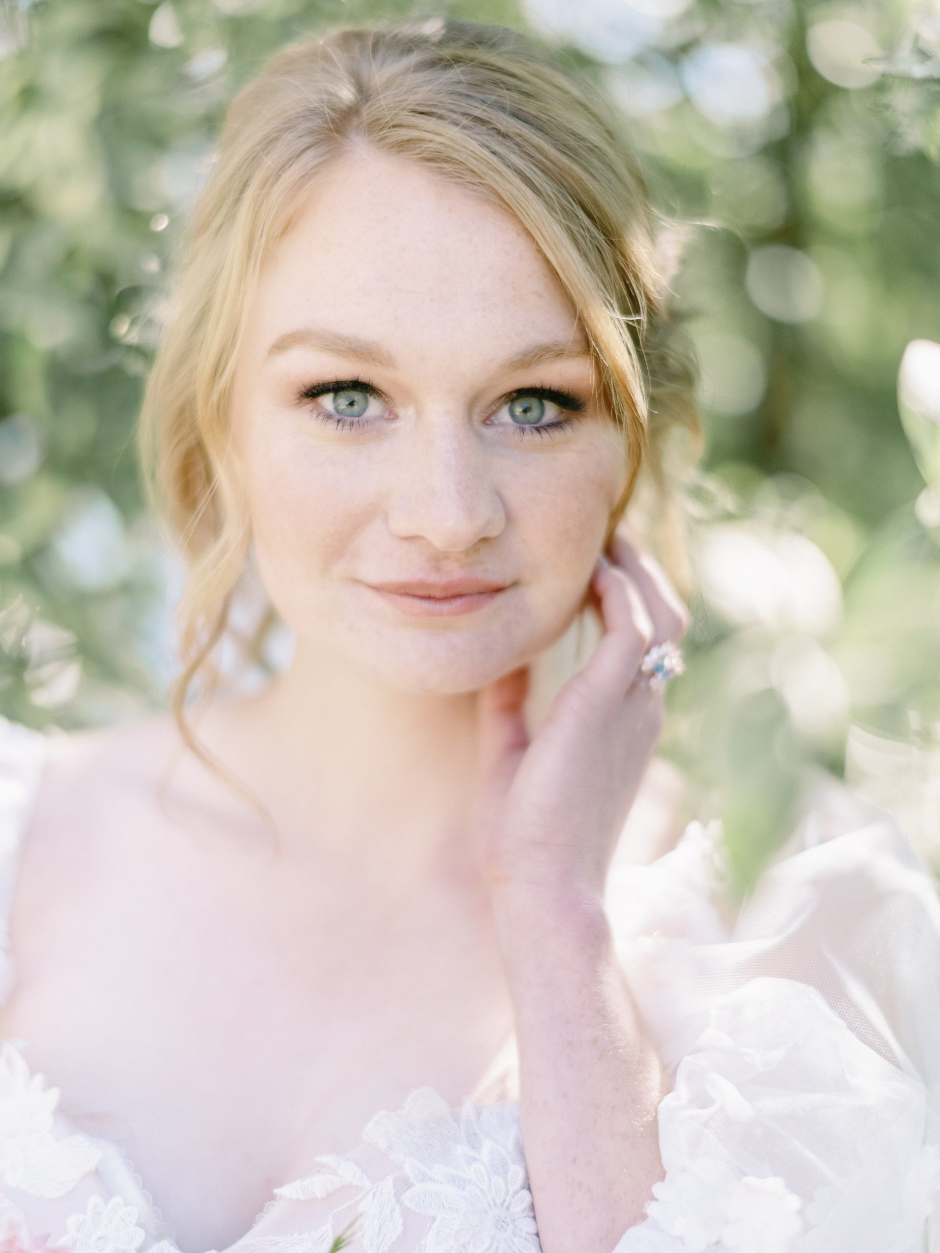 “We love this look because it is our signature soft glam look that is perfectly bridal! We love glowy skin and a champagne shimmer to make your eyes pop!”