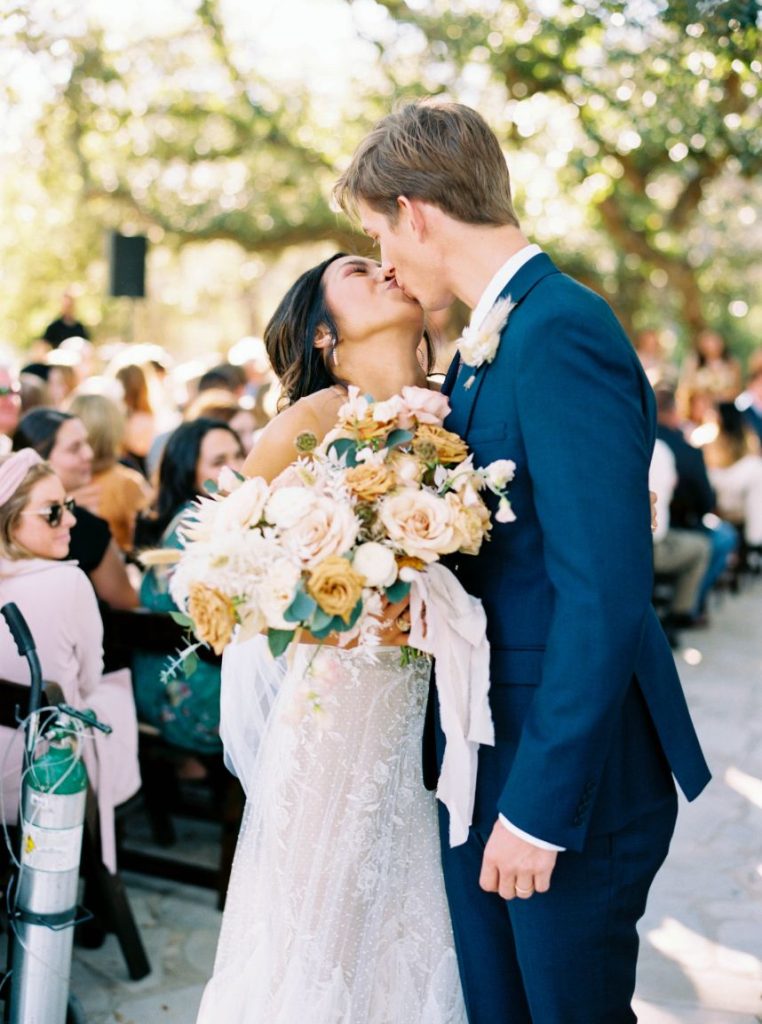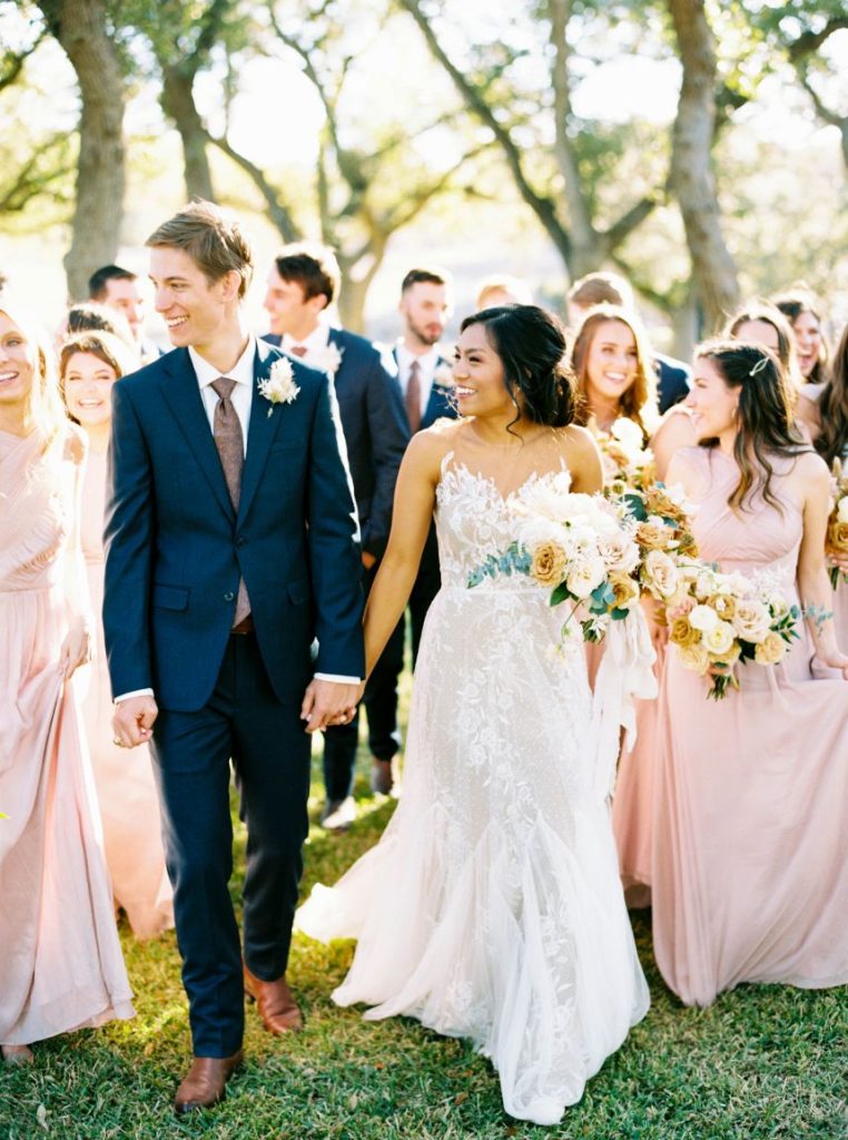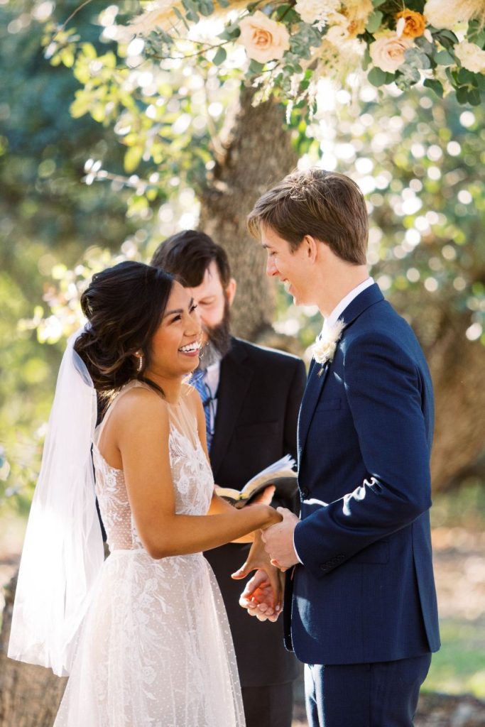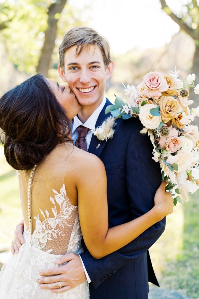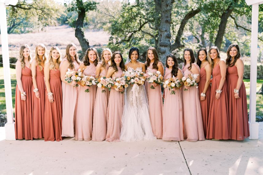 We are huge fans of the way this earth-toned wedding was accented perfectly with softened bohemian design! Tiffany and Gavin first met during their senior year of high school through mutual friends, but their paths never really crossed until they found themselves attending the same New Years’ Eve party after each of their original date plans had fallen apart. After spending the whole night talking, they eventually went on a date and made things official a few months later. Tiffany and Gavin had their rehearsal dinner at The Hall at Jester King Brewery where they made memories with both sides of the family. These beautiful photos show off just how in love they truly are in their wedding at The Addison Grove, surrounded by dusty mauve and warm, earthy shades giving their affair a soft bohemian elegance. Eats, drinks, and even an abstract art deco cake by Royal Fig Catering stole the spotlight in this wedding, and we love that bride and groom paired their cake with a hot chocolate bar for those looking for an extra sweet option. Dreamy tablescapes set with garden roses, dried palm fronds and pampas grass in terra cotta centerpieces have us swooning! There is so much to love about this elegant yet bohemian wedding style. Read on for a note from the bride about her favorite wedding day memory. Cheers to Tiffany and Gavin!
