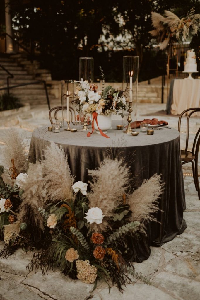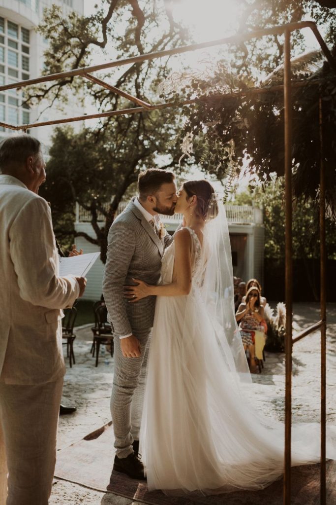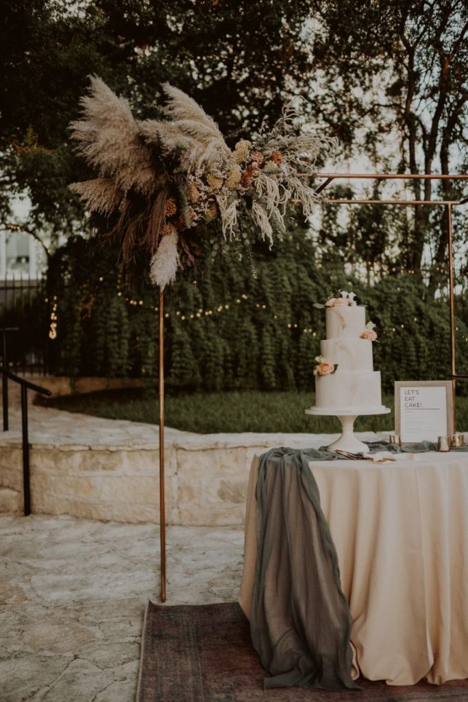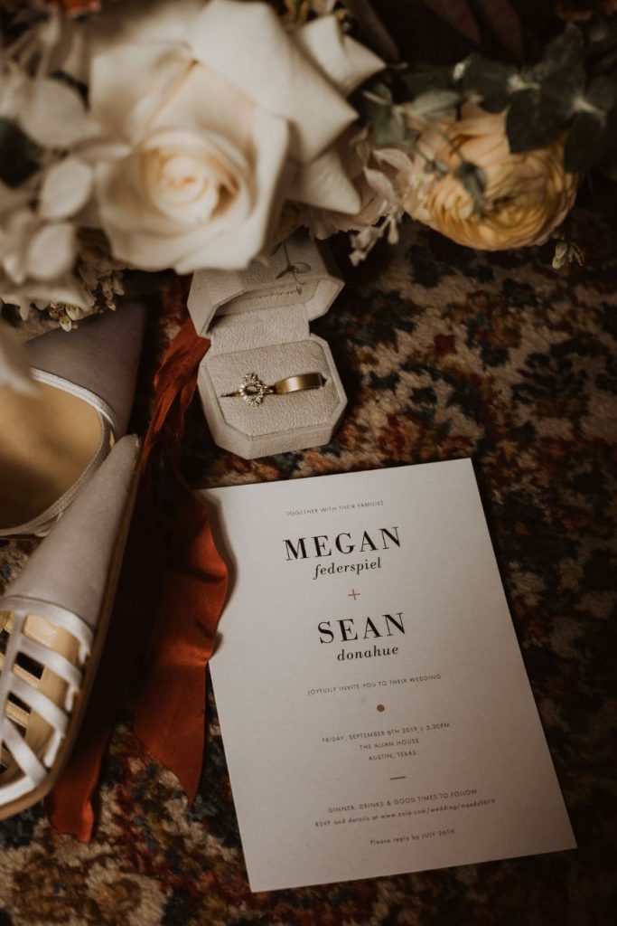 Set against a charming historic Victorian home at the heart of Downtown Austin, The Allan House incorporated just enough modern and old-world vintage details to leave us obsessed! Megan and Sean’s love is so apparent, and their taste reflects it too! We’re head over heels for these refined bohemian wedding scenes filled with gorgeous florals and fun pampas grass from Wildly Cultivated Floral Design. The reception was shrouded with more rust-toned blooms, gold accents and flickering candles to create a vintage, cozy vibe. Our mouths dropped when our eyes caught a look at the couple’s three-tiered marbled cake adorned with pastry petals from the amazing Sweet Treets Bakery. After the wedding festivities came to an end, the couple and their guests headed to The LINE Hotel Austin where accommodations were nothing short of phenomenal. Read on to hear from the bride about one of her favorite wedding memories. Cheers to the Donahues!