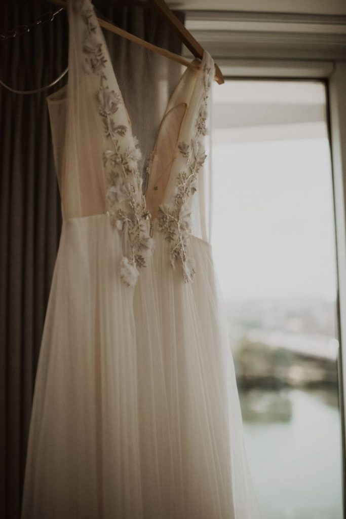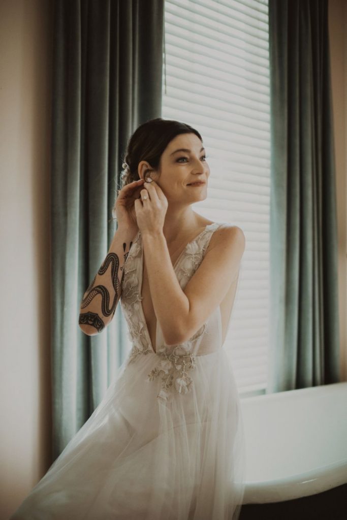 From the bride: “We opted to not do a first look before the ceremony, so turning the corner and seeing my soon-to-be husband was a moment I will never forget. The amount of emotions that rush over you in that moment is describable. Aside from that, after the ceremony ended, I had asked that we got some time alone together to take it all in. We were escorted into a nearby room, gin and tonics waiting and had the most incredible fifteen minutes alone together, just the two of us.”