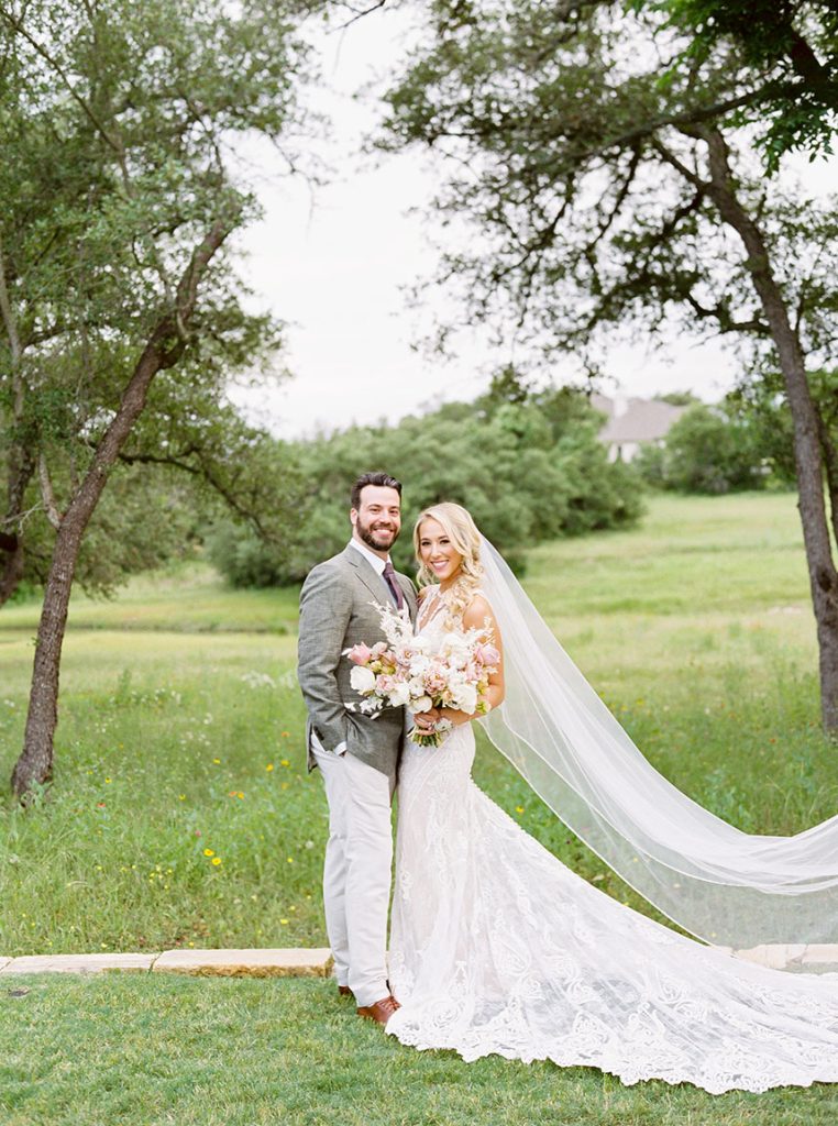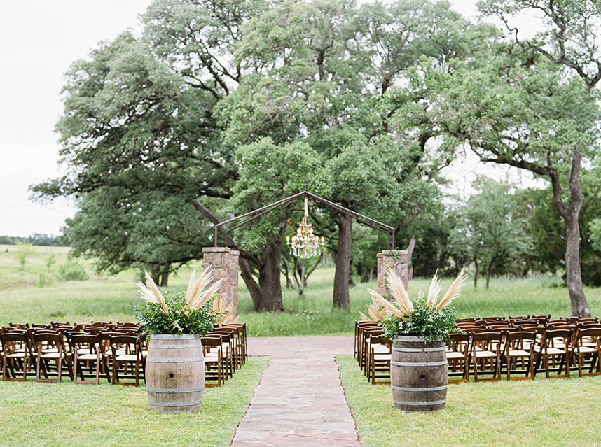 The subtle bohemian vibe of this wedding pairs absolutely flawlessly with Ma Maison – a French-inspired venue in the beautiful Dripping Springs, Texas – and we are loving this bride’s eclectic vibe! Nicole Rushton and George Boone’s wedding was captured so elegantly by Mint Photography, and we’re so glad so that we can take a peek into this stunning day. Nicole looked like an absolute dream in her lace Marina Liana bridal gown from Blush Bridal Lounge. The pampas grass and muted blush and coral florals bring out the bohemian vibe of the Boone’s wedding, all the while, ivory and gold details pulled back in the classic French style of the venue. With catering and bartending from the always wonderful Crave Catering, there’s truly not one detail of the happy couple’s wedding day that we aren’t loving! This one is a must-see for all you bohemian loving brides – cheers to the new Mr. and Mrs!