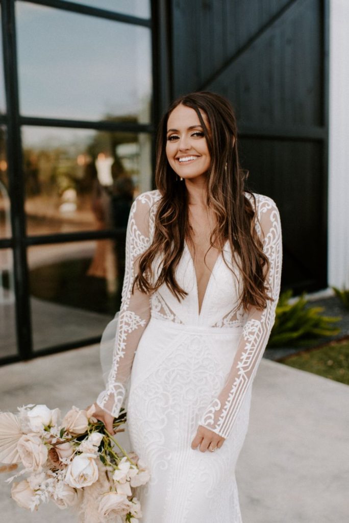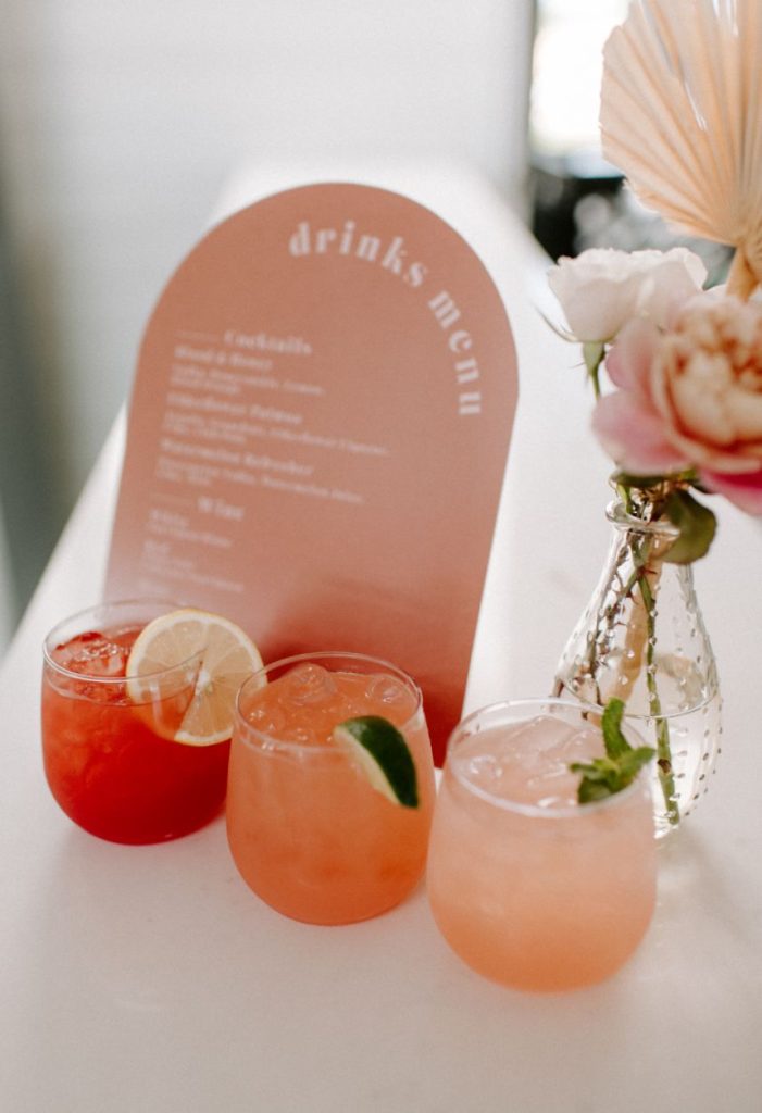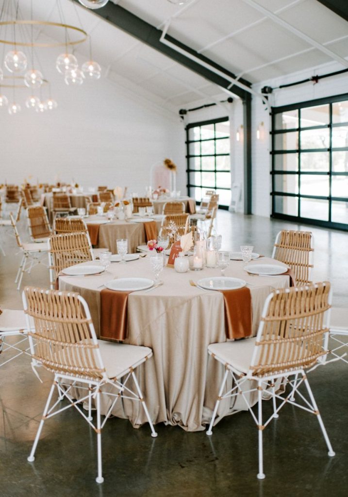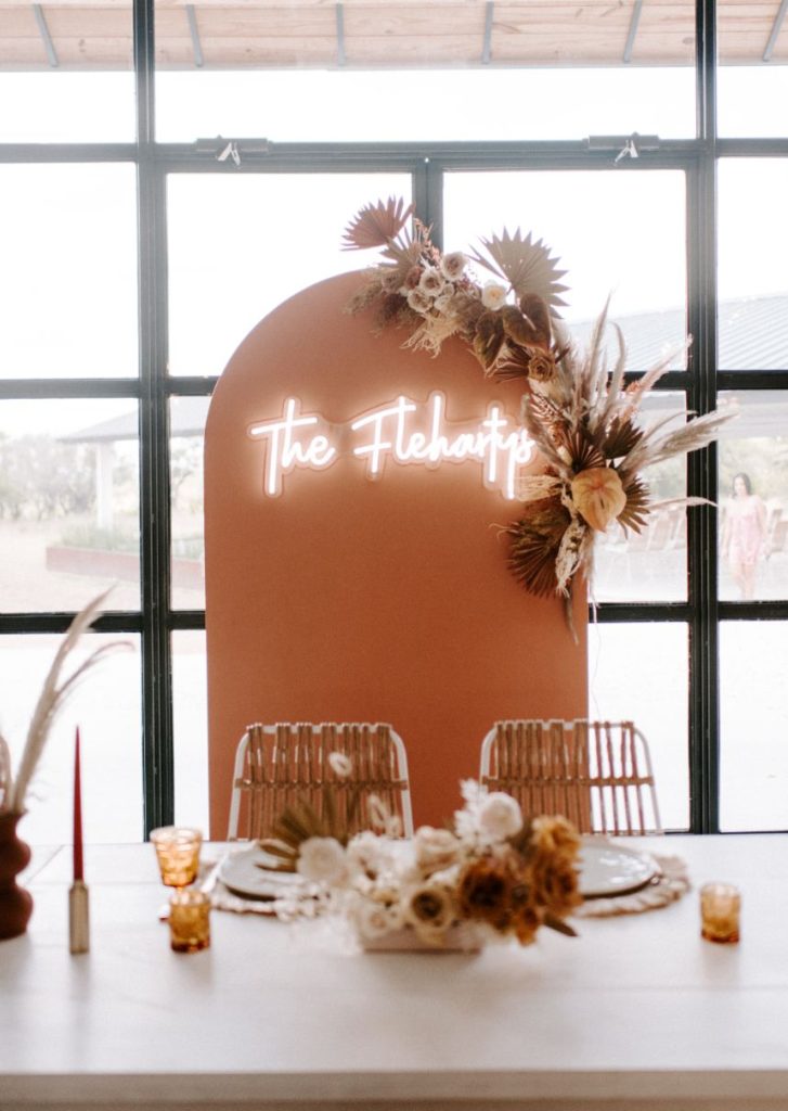 Colorblock decor is one of the latest wedding trends that we are absolutely obsessed with, and this boho wedding is full of all the inspiration in terracotta and neutrals! This wedding day was truly one for the books, as Katie and Phillip couldn’t have been more ecstatic to finally have their personal, unique wedding day after having to postpone for months due to COVID-19. As the perfect mix of rustic and soft industrial styles, the stunning setting of Mae’s Ridge made for an undeniably light and bright venue for all of the boho, terracotta and arched-shaped pieces of this celebration to be showcased. With Katie and her best friend starting up a wedding decor rental business of their own, she wanted her wedding to encompass all that she wanted her business to reflect, making her own wedding the first one to include some of the pieces featured – including custom made ceremony arches, champagne wall, welcome sign holder and the colorblock arch that held their custom neon sign – we’ll definitely be on the lookout for these pieces in future weddings! Throughout the evening, guests enjoyed custom cocktails from Drink Slingers that not only matched the color palette of this day, but tasted as good as they looked – we’d happily take one of those watermelon refreshers right about now! To keep the celebration going all weekend, the newlyweds plus some of their guests enjoyed the oh-so comfy luxury accommodations at Lucky Arrow Retreat. Scroll to see all of the colorblock decor of this boho wedding and the terracotta and neutral color palette that infuses it all. Cheers to Mr. and Mrs. Fleharty!
