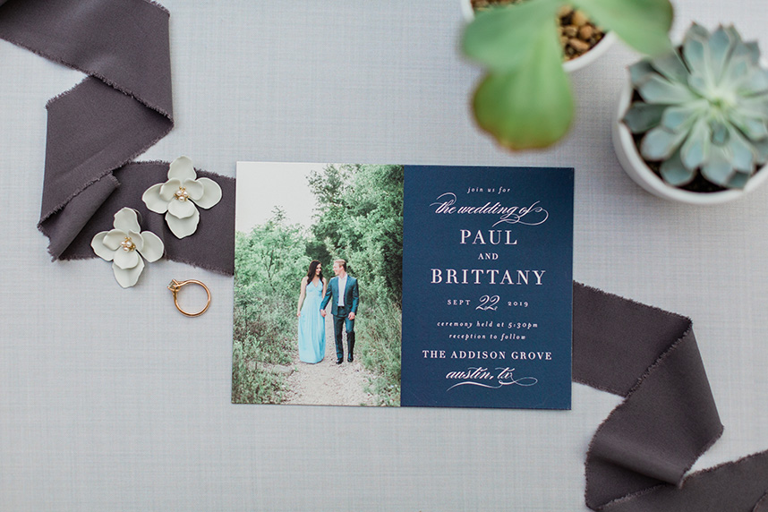This romantic botanical inspired wedding was such a dream! With classic navy blue touches and modern gold accents, what’s not to love about Brittany McKone and Paul Gray’s wedding day? With the groom being a botanist, we’d expect nothing less than this plant-filled celebration, and thanks to Flor Amor, each guest got to take home their own personal succulent at the end of the night! The couple wanted their wedding to be all about joy and love, with their love of nature being evident, so The Addison Grove was the perfect venue for their outdoor ceremony under a canopy of oak trees. Brittany kept her theme of natural elegance going with her stunning bridal gown from Blush Bridal Lounge and gorgeous natural-looking hair and makeup. Captured beautifully by the wonderful Dreamy Elk Photography & Design, LLC, we are totally swooning over every detail of this botanical soirée and are sure you will be too!