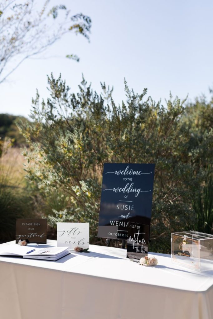 We are absolutely teary-eyed over Wenjane and Susie’s minimalist-romantic wedding that includes some of the most gorgeous florals we’ve seen! Planned by Lotus Events, this light and airy wedding held at the lovely Camp Lucy is the perfect definition of a sentimental soiree. All the sweetest rentals and bundles of blooms from Whim Hospitality truly bring the entire event together. We love their gorgeous floral altar as well as their bold and moody palette of navy and crimson. Our favorite part was this couple’s beautiful wedding cake – a simple but elegant three-tiered cake topped with both brides’ initials. Cheers to Wenjane and Susie!