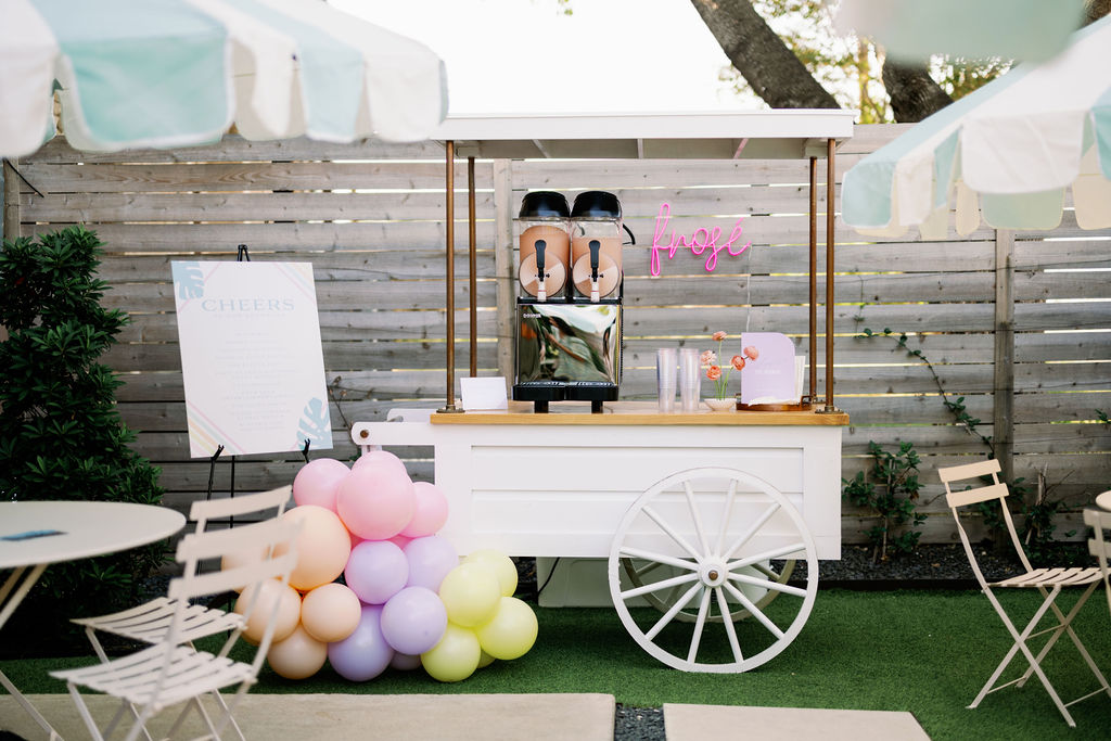 As guests entered, they were greeted by the most beautiful, pastel custom signage by LBV Design House! The whole venue was elevated by the captivating florals by Wildly Cultivated Floral Design, they added the perfect pop of color to each table. Besides the florals and signage, the rentals from Party at the Moontower Event Rentals added even more color to this Palm Springs-inspired party.
