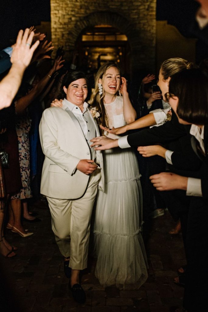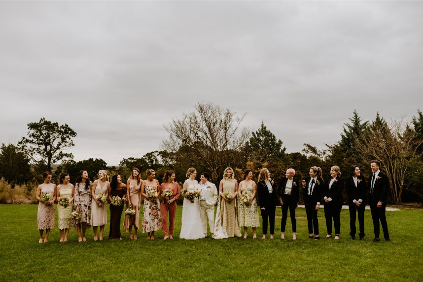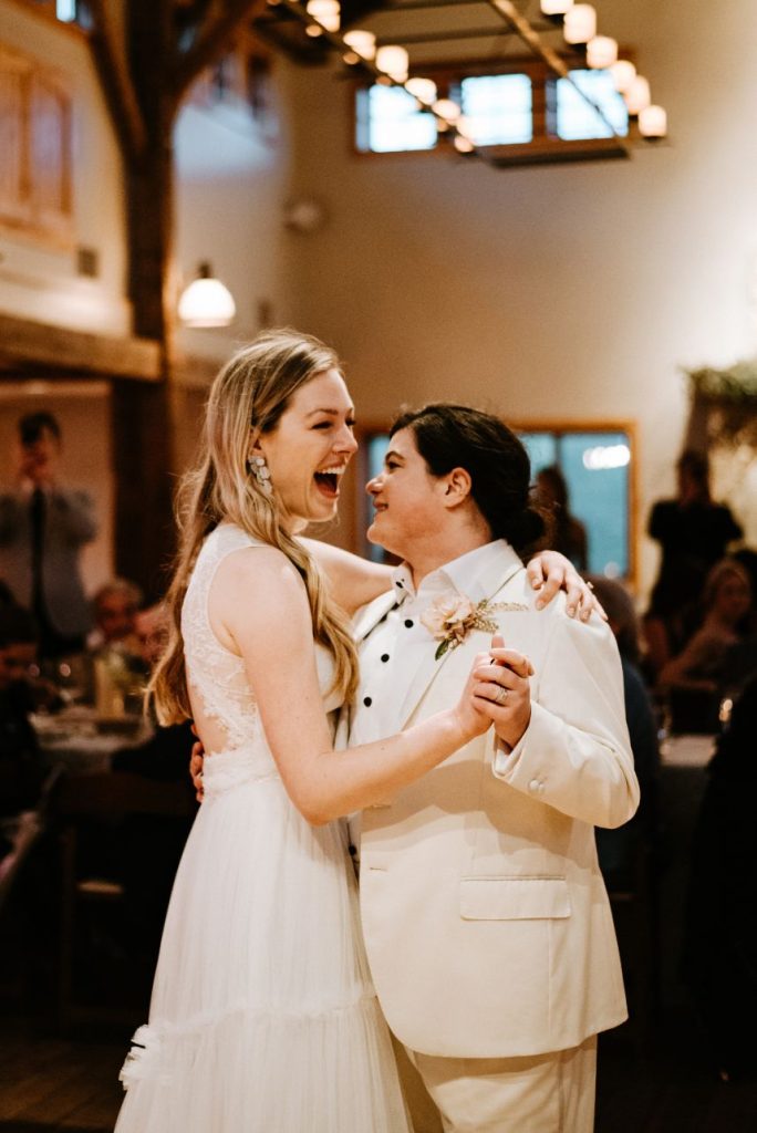 From the brides: “When we were looking for a venue, it was really important for us to be able to have all of our friends together in one place for the whole weekend. When we found Camp Lucy, we knew it was the perfect venue for us. We didn’t want the bridal party to miss out on the fun camp activities, so we didn’t stick with tradition, and instead, Grace and I spent the day together with all the guests. You’re only able to get all of your family and friends in one place once, and we wanted to make sure we made the most of it!”