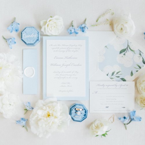 A moment for the details of Emma + Will’s beautiful wedding sprinkled in blue! From the venue to the florals, we are obsessed!