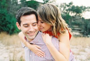 Britani and Kurt were getting family photos taken with their chocolate lab puppy for their Christmas card. They bought color coordinating outfits and a gold bow collar for their puppy. The photographer emailed the couple asking if they could meet before for the photoshoot to discuss where they wanted to take the pictures and what poses they wanted. Little did Britani know, Kurt had coordinated with the photographer to set up this meeting before the photoshoot. As they pulled up to the valet at the Omni Barton Creek, one of the hotel event staff coordinators met them at the door and asked where they were headed (Kurt had already met with the event staff to plan this as well). Kurt told the event coordinator where they needed to go to meet the photographer. She took them through the hotel and down the stairs to the back patio bar. Once they reached the 18th hole near an oak tree, Kurt tied the dog’s leash to the tree. Britani still wasn’t aware of what was happening and kept asking Kurt what he was doing, and then Kurt got down on one knee and asked her to spend the rest of her life with him. It was a perfect moment for the couple, and their photographer captured everything while hiding behind a bush so Britani would not see him.