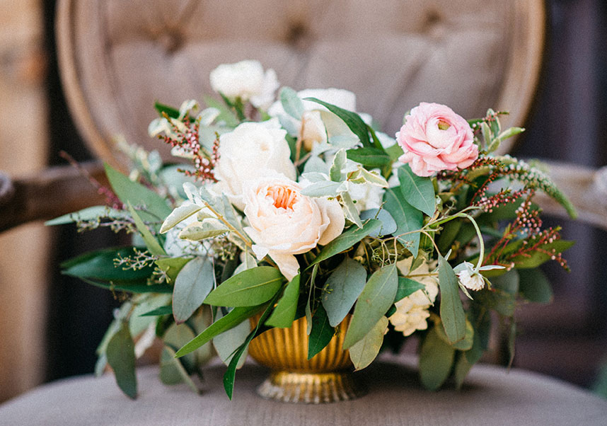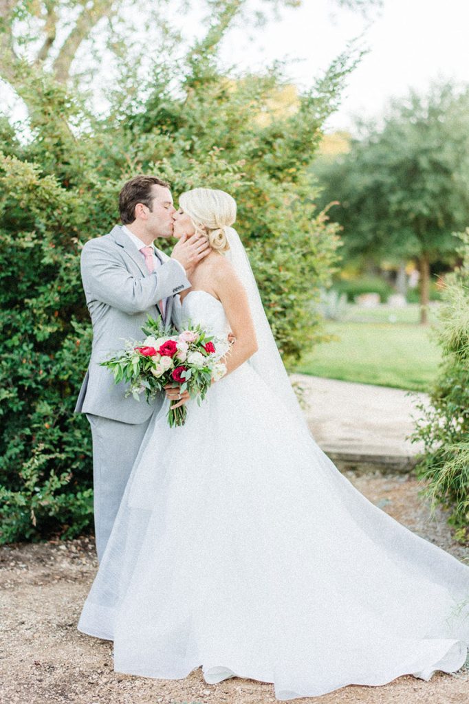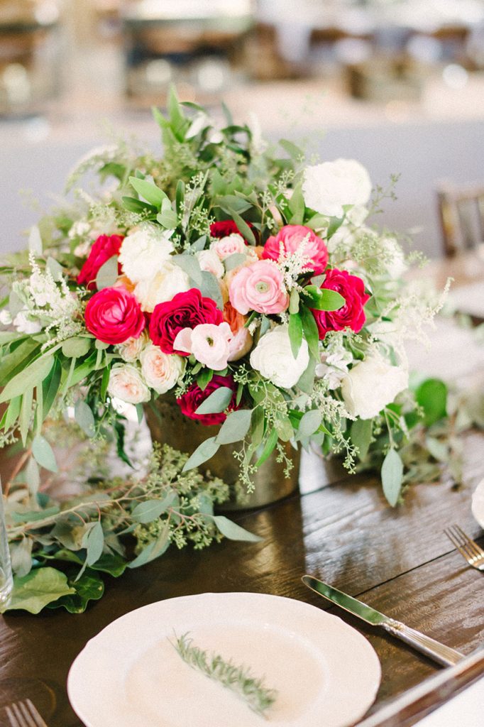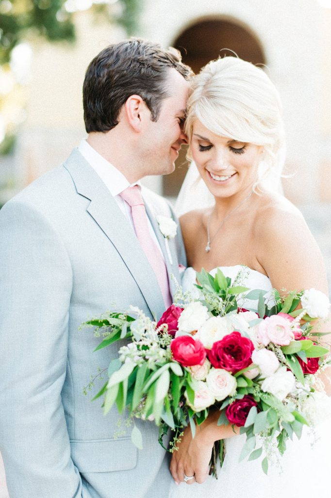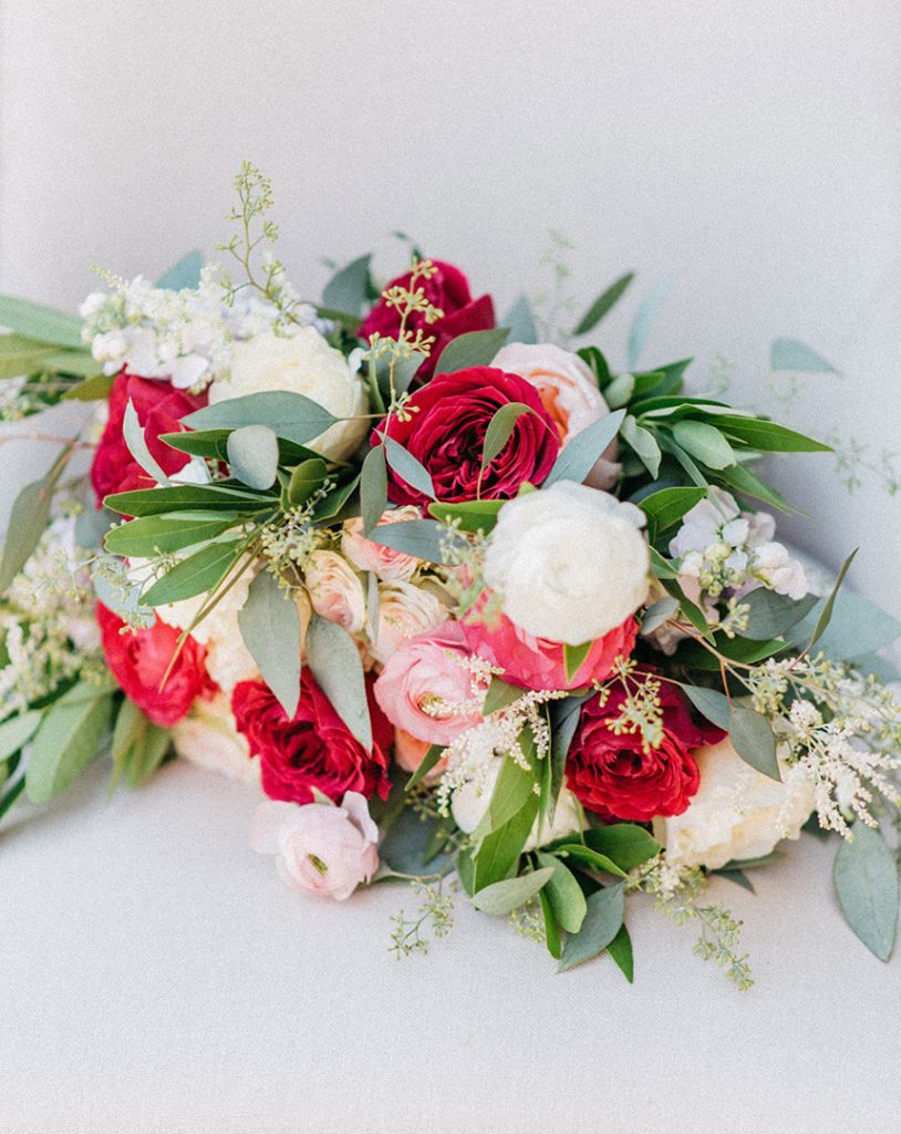 BEAUTIFUL BLOOMS: Brooke’s bouquet was a stunning wild design of white and hot pink garden roses, ranunculus, freesia, spirea branch, white hellebore, seeded eucalyptus and silver dollar eucalyptus designed by Sweet Magnolia Floral Studio. It had the perfect pop of color to help her stand out on her big day.