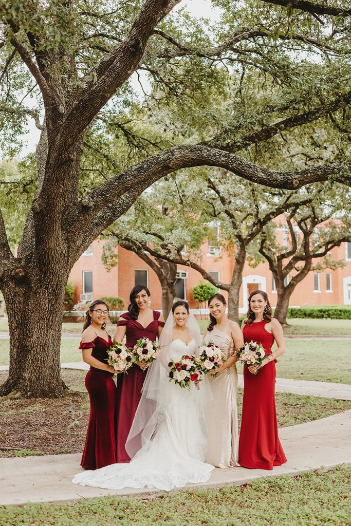 After seven years in NYC, Monalisa Solis and Giancarlo Jaccoma moved to Austin and began planning their dream wedding along with Kristin Catter Events! Their beautiful burgundy Austin wedding featured florals from Bouquets of Austin and a surprising wedding cake – see it all below!