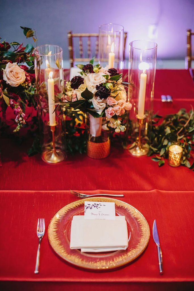 From the bride: “My favorite memory was just before we were introduced as husband and wife at our reception. We snuck past everyone at cocktail hour and shared a private dinner together, away from the crowd, alone for the first time after running around separately all day. It felt like the rest of my life.”
