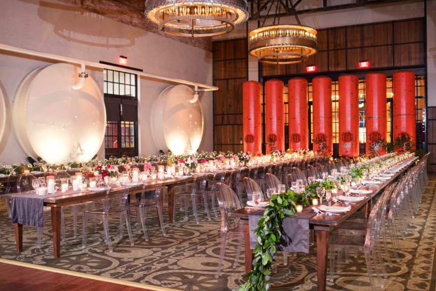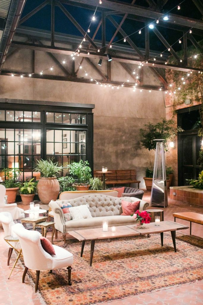 After a classic church ceremony, Elizabeth + Tyler headed to their candlelit industrial wedding at a former brewery turned hotel. It had the elegant cool vibe the couple wanted, and Westcott Weddings took care of all the details so their dream day went off without a hitch! It was important to the couple that their guests felt comfy, so they filled the courtyard with vintage lounge furniture and rentals from Loot Rentals and Marquee Event Rentals. Sprout Floral and Event Design dressed up the farmhouse tables with bright floral arrangements and greenery, and guests danced the night away to the tunes of Royal Dukes Band! Cheers to the happy couple!