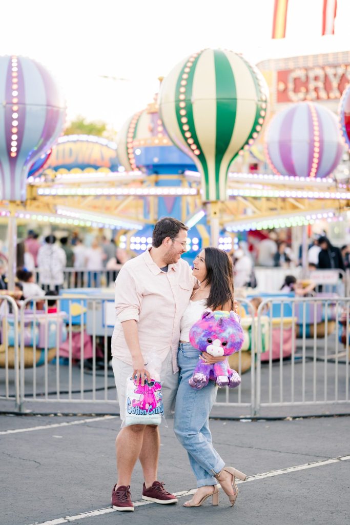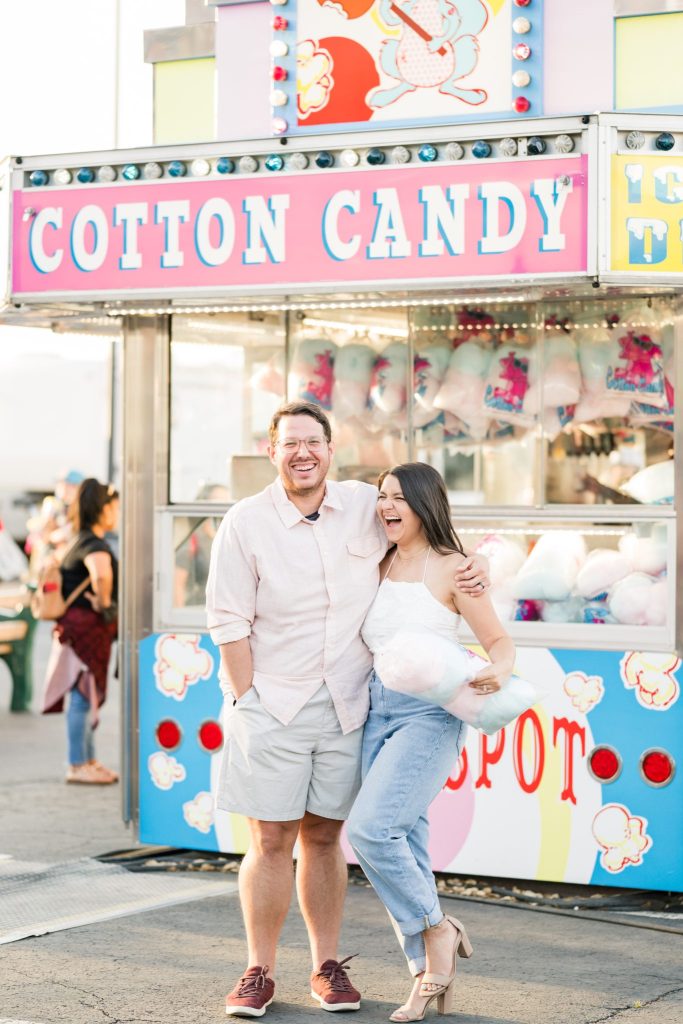 Cayla and David’s contagious smiles and love for one another shine through each photo Mylah Renae Photography captured. Our hearts are completely swooning over the images of the couple on the Ferris wheel with their playful smiles. You don’t want to miss all the photos Mylah Renae Photography captured below. Therefore, grab some cotton candy because we grant you free admission to witness the magic inside Cayla and David’s shoot below.
