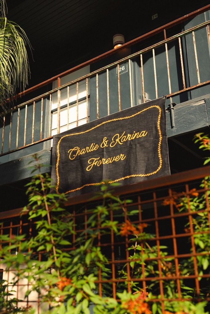 This wedding felt less like a production and more like an intimate gathering—thoughtful, unfussy, and deeply personal. From the hand-lettered banner draped across the balcony to the softly layered reception details, every moment felt lived-in rather than styled for show. Guests mingled through garden paths, laughter carried through the trees, and the celebration unfolded naturally, without rush or rigidity.