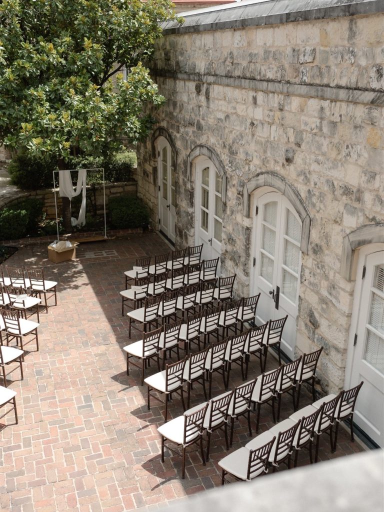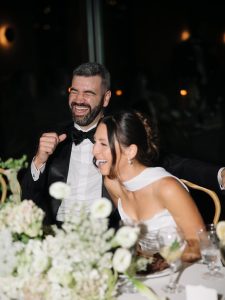 “Our wedding was the MOST fun day. We kept the guestlist on the smaller size, wanting to focus on an intimate and elevated experience for our closest people. ⁠Our ceremony in the gorgeous courtyard of Chateau Bellevue felt both grand and cozy. Looking out amongst the dining room during dinner and seeing so many loved ones eating, drinking, and laughing together brought a tear to my eye. And hearing toasts from our best friends brought a few more! The highlight of the night was definitely the dance floor. The DJ curated the perfect vibe and it felt like a massive party, even with just 70 people. We ended the night with a private dance and then riding away on Chris’s motorcycle— a memory that I will have forever. It felt so perfectly us.” – Shai & Chris ❤️‍🔥