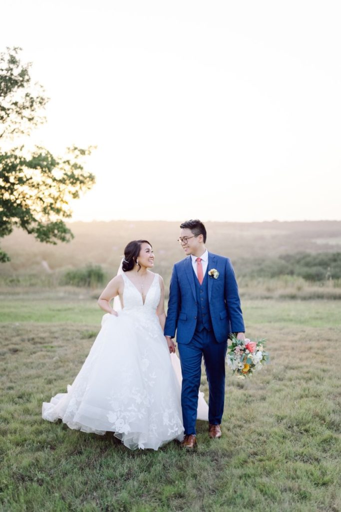 Christine and Robert were wed in the sweetest simple, romantic wedding held at Mae’s Ridge that perfectly reflected their effortless love for one another. The pair first met at an Asian American Campus Ministry large group but didn’t really start talking until the spring semester of their freshman year at The University of Texas during one of their biomedical engineering labs. Between long hours studying for shared classes and having overlapping friend groups from campus ministries, the two became really close friends throughout their remaining years of college. They officially started dating a few months after graduation and finally got engaged in the fall of 2020!