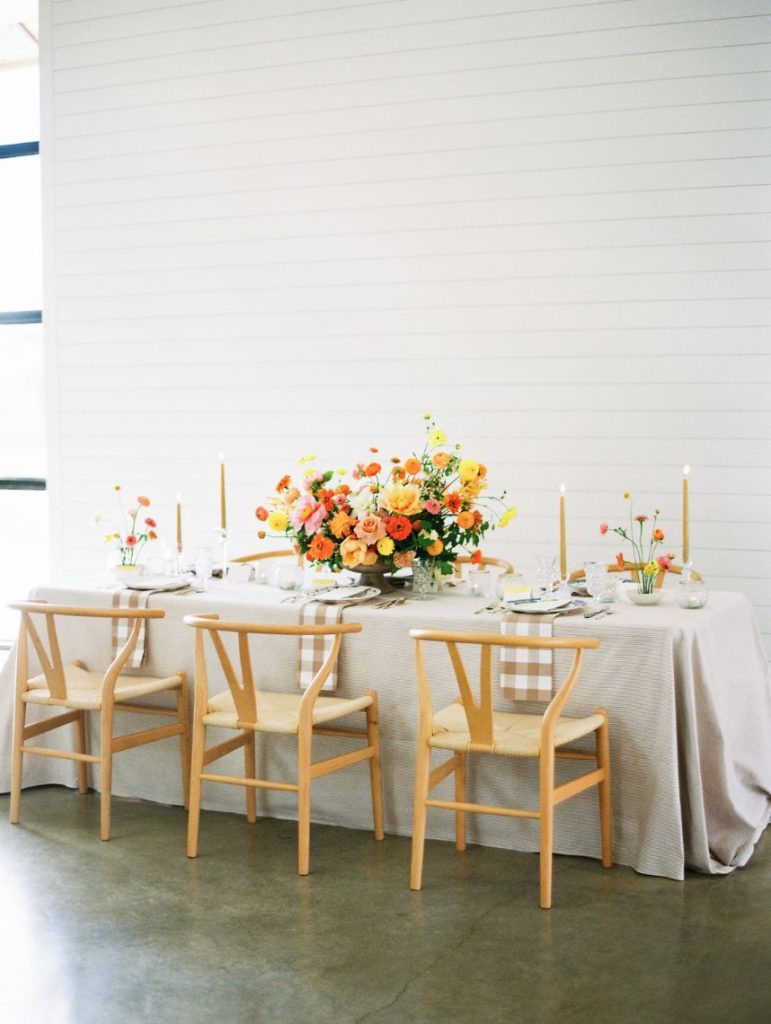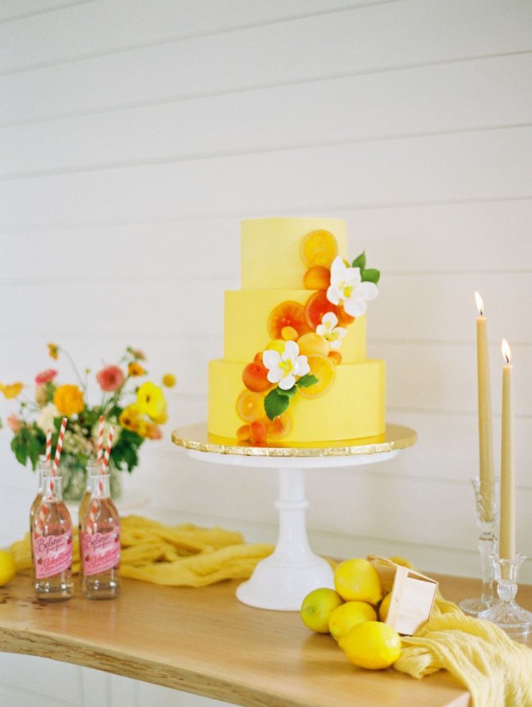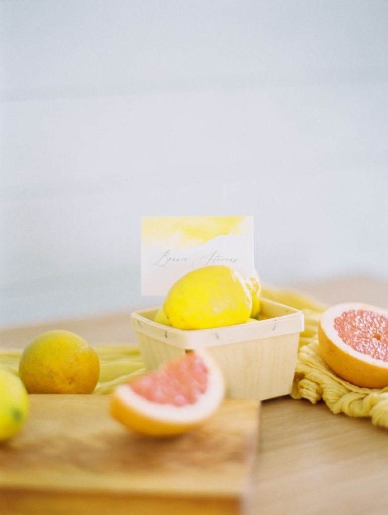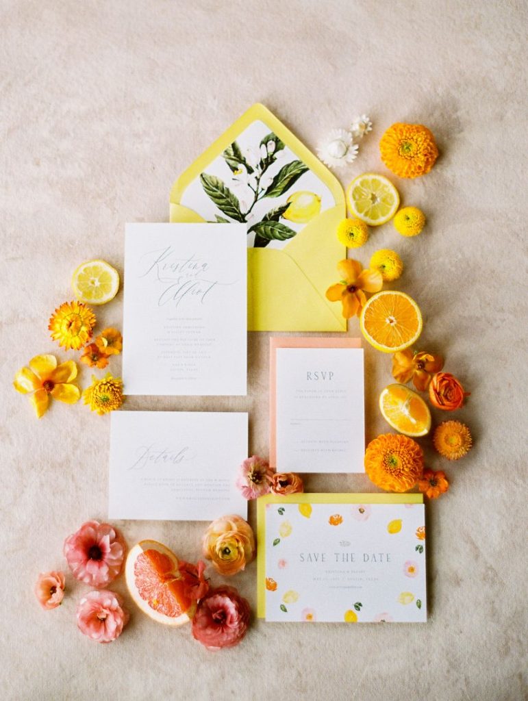If a bright, happy and cheerful soirée sounds right up your alley, you’re going to want to scroll through this citrus style editorial for ALL the dreamy and delightful ideas you could ask for. Austin wedding planner and stylist extraordinaire Ellen Westcott of Westcott Weddings worked with the powerhouse floral team at Remi + Gold to bring this summery-toned scene to life at Mae’s Ridge, but they want brides to know – citrus can work in any season! With the right eye for design, there are ways to incorporate bright fruits and florals into your wedding design no matter the time of year. Fine Day Press designed stationery to perfectly complement the editorial’s aesthetic, while 2Tarts Bakery added the happiest little yellow cake and a charcuterie-style dessert board to the mix. With classic images by Kristin La Voie Photography capturing all the angles and details, we just can’t get enough of the joy this citrus style wedding inspo brings!
