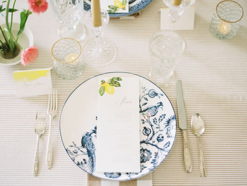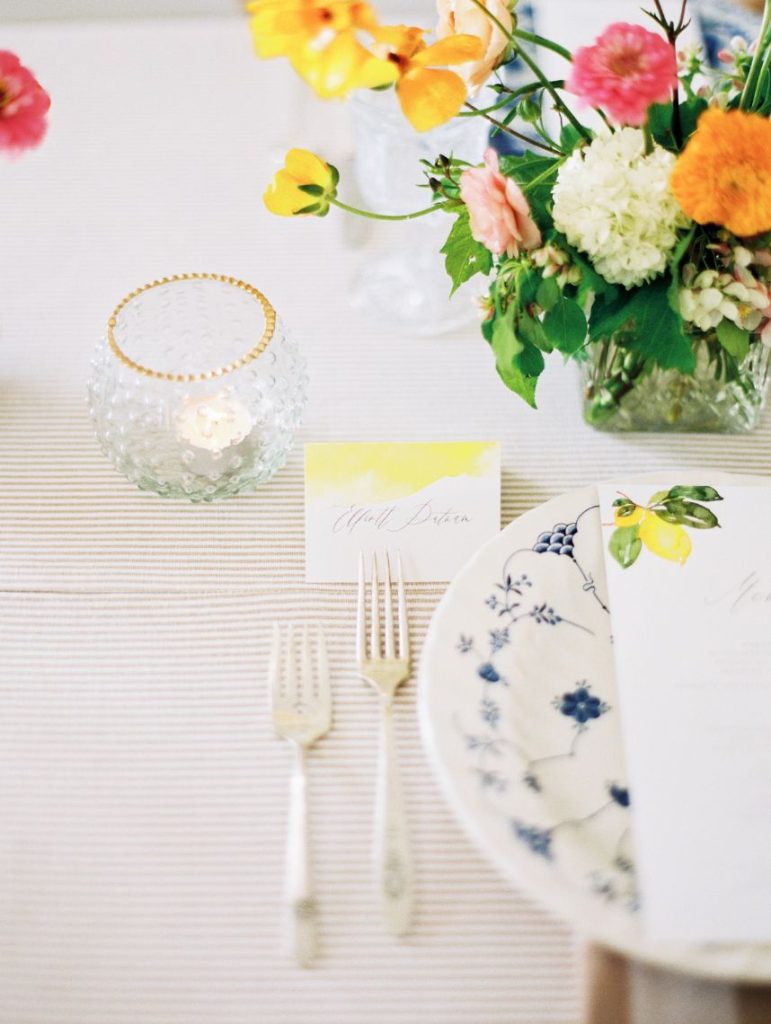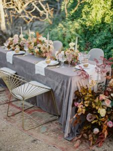 From the florists, Remi + Gold: “What’s not to love about a tabletop filled to the brim with flowers and fruit! There’s a way to tastefully make citrus tones work in any season. One of the most important decisions brides and grooms who care about cohesive design can make is choosing a wedding planner who also brings a design eye to the table! Finding unexpected ways to incorporate your personality is a tricky thing, and a well versed wedding designer knows how to bring that out.”