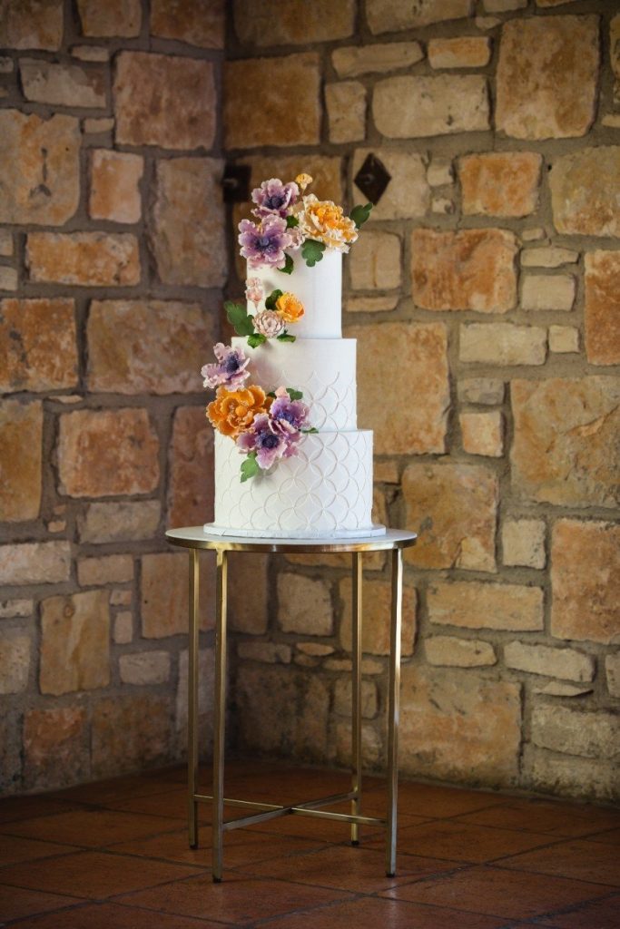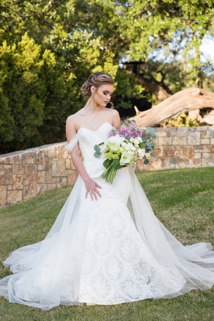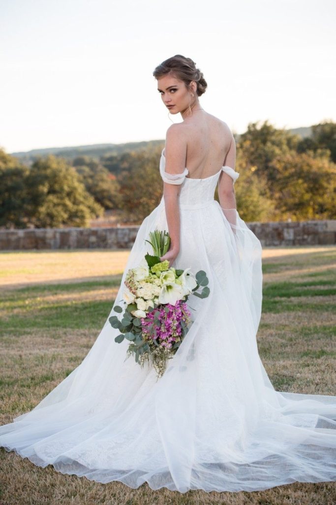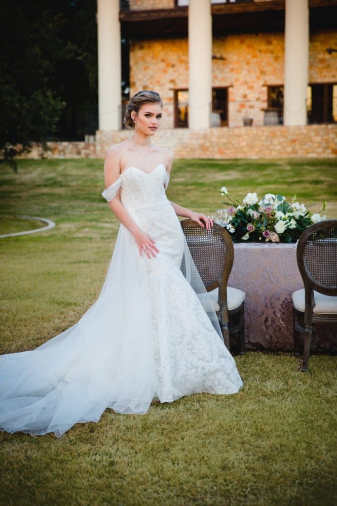 Spring has officially sprung, and we could not be more excited to continue sharing more gorgeous content from our brand new issue! Today, we’re taking a closer look at this fabulous classic romance color inspiration shoot set at the stately Thurman’s Mansion, located in the breathtaking Texas Hill Country, featuring hues of dusty plum, lavender and marigold. Shot by CCPhotoFactory, Premier Select staged the traditional scene with elegant place settings and unique table linens. Per usual, Sweet Treets Bakery blew us away with their three-tiered confection, featuring bright florals and an intricate geometric pattern. Our model bride was the essence of beauty and grace in a sweetheart off-the-shoulder lace gown from Julian Gold and fine jewelry courtesy of Nicole Mera. She wore a curled updo and dramatic makeup styled by Jose Luis Salon. The Flower Studio crafted the prettiest bouquet of fresh blooms that gave this day the pop of color it needed! Menu cards and deckle-edged invitations from Grey Meets Gold Print Shop offered a subtle thoughtfulness to complete this shoot!