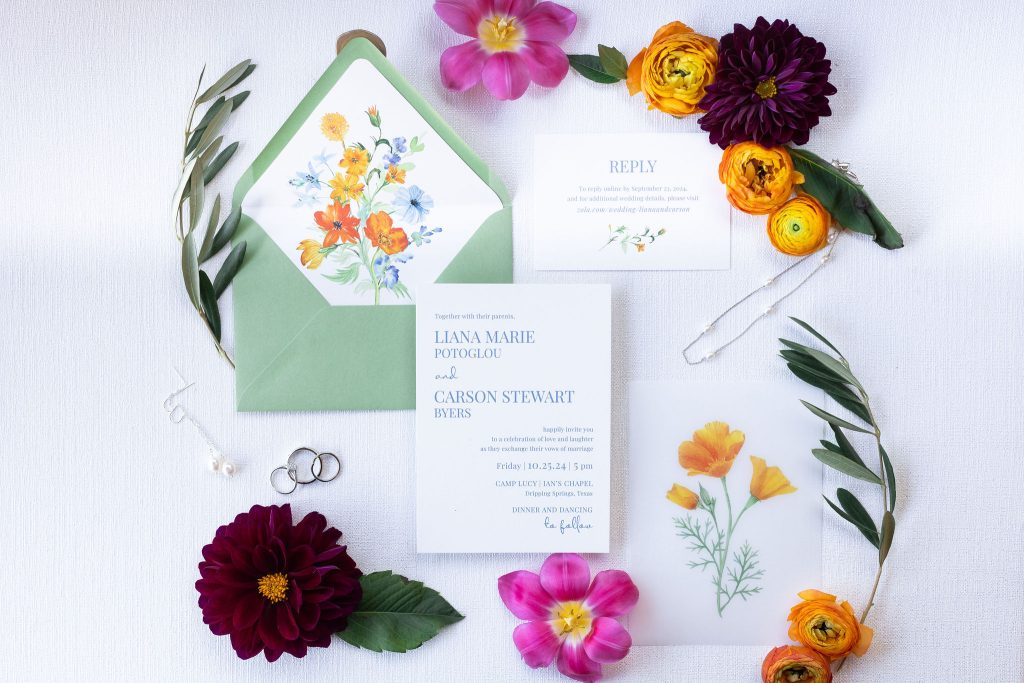 Liana and Carson’s wedding was a colorful and joy-filled affair blending classic elegance with fresh, modern touches. With a vibrant palette of citrus and floral hues, their celebration at a charming stone chapel featured romantic outdoor portraits, candlelit reception tables, and thoughtful details throughout. From signature cocktails to heartfelt moments under the Texas sun, their day was both timeless and bursting with personality.